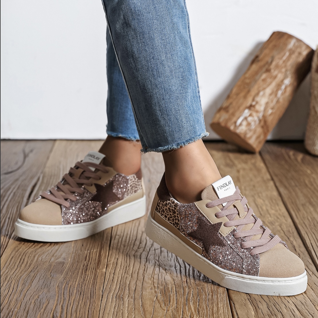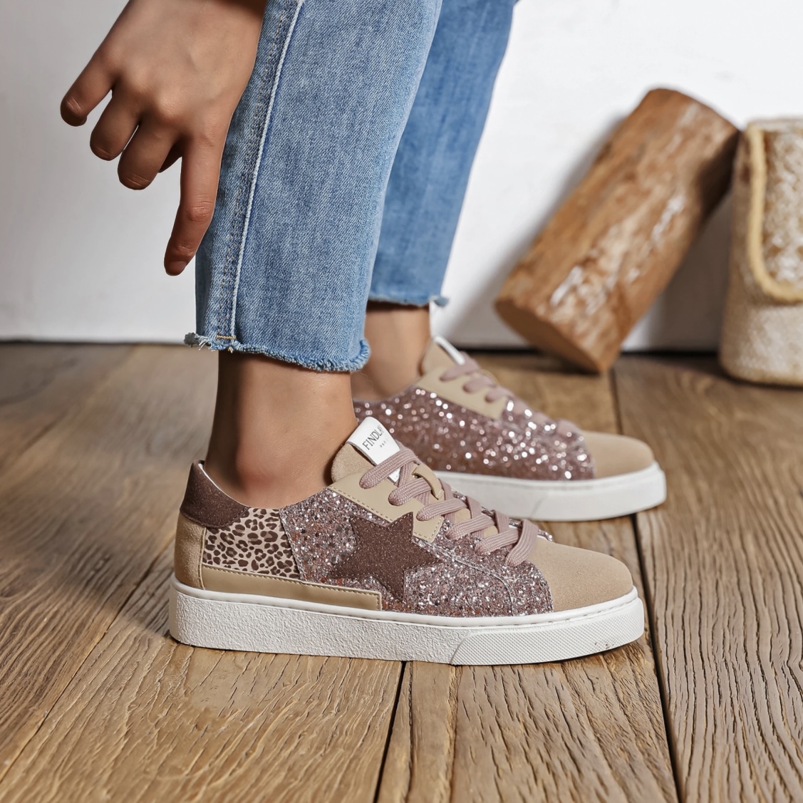 Avec leur mélange d’empiècements à paillettes scintillantes, d’effet daim nude et d’imprimé animalier discret, elles affichent un style unique, moderne et féminin. La grande étoile latérale leur apporte une allure tendance et reconnaissable, parfaite pour celles qui aiment se démarquer.