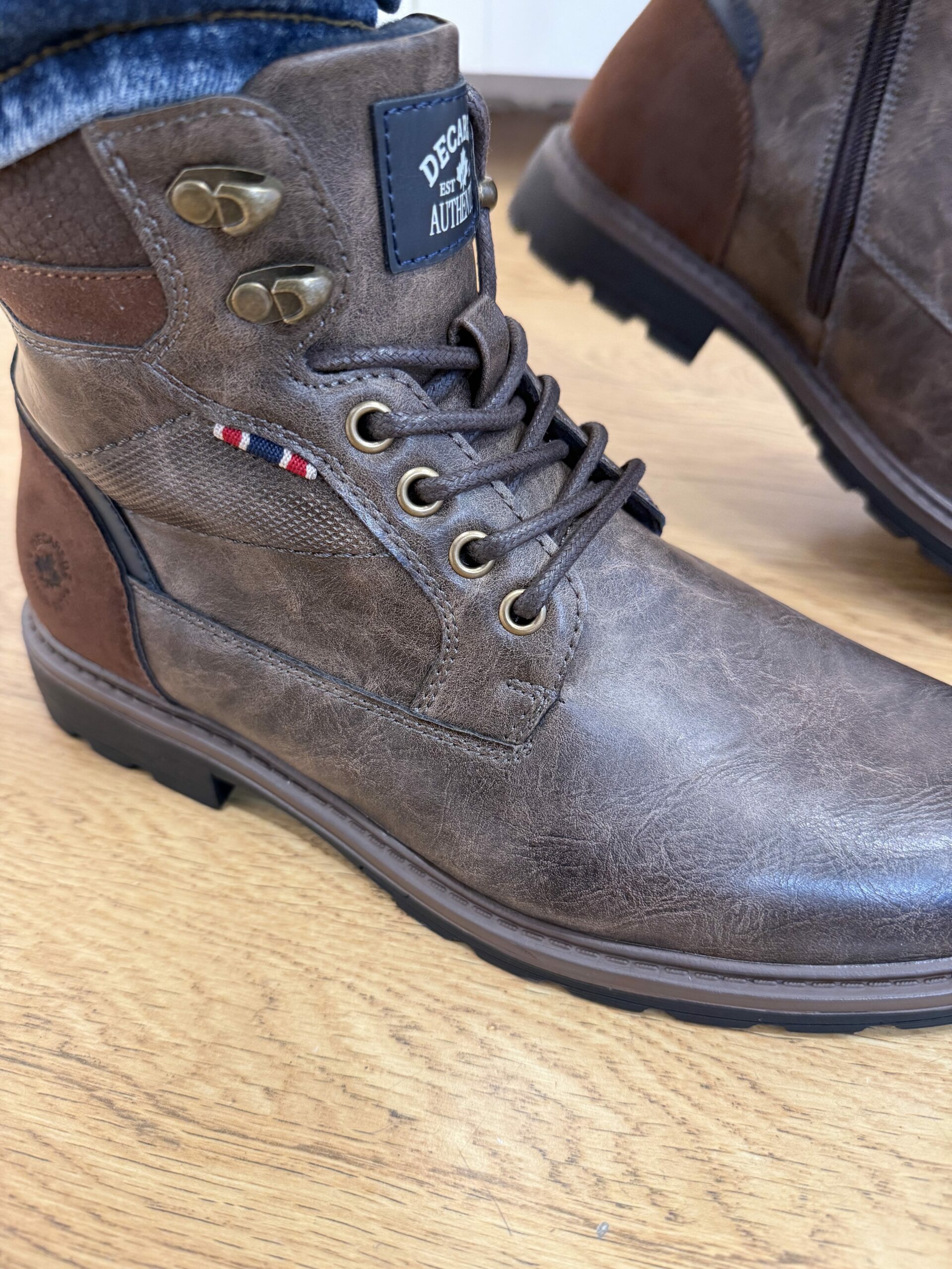 Les boots Ewen combinent style, robustesse et confort, pour un look à la fois masculin et tendance. Leur matière effet cuir vieilli apporte un charme authentique, parfait pour un style baroudeur moderne.