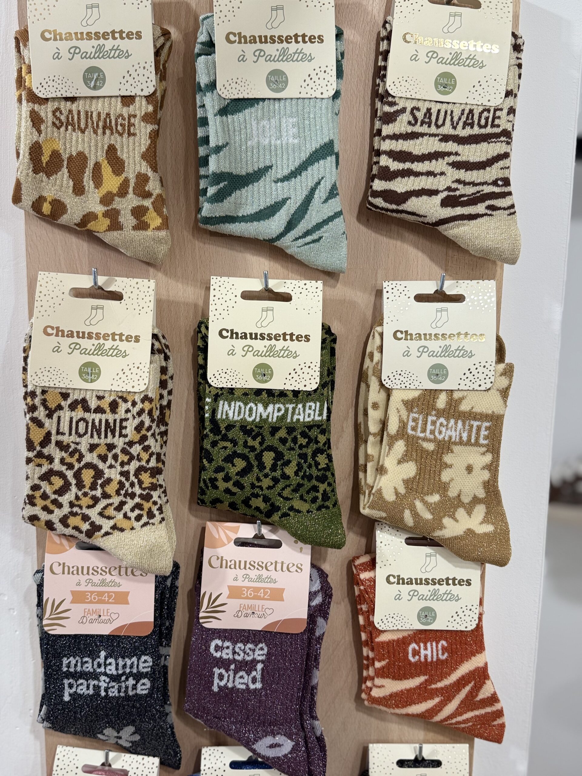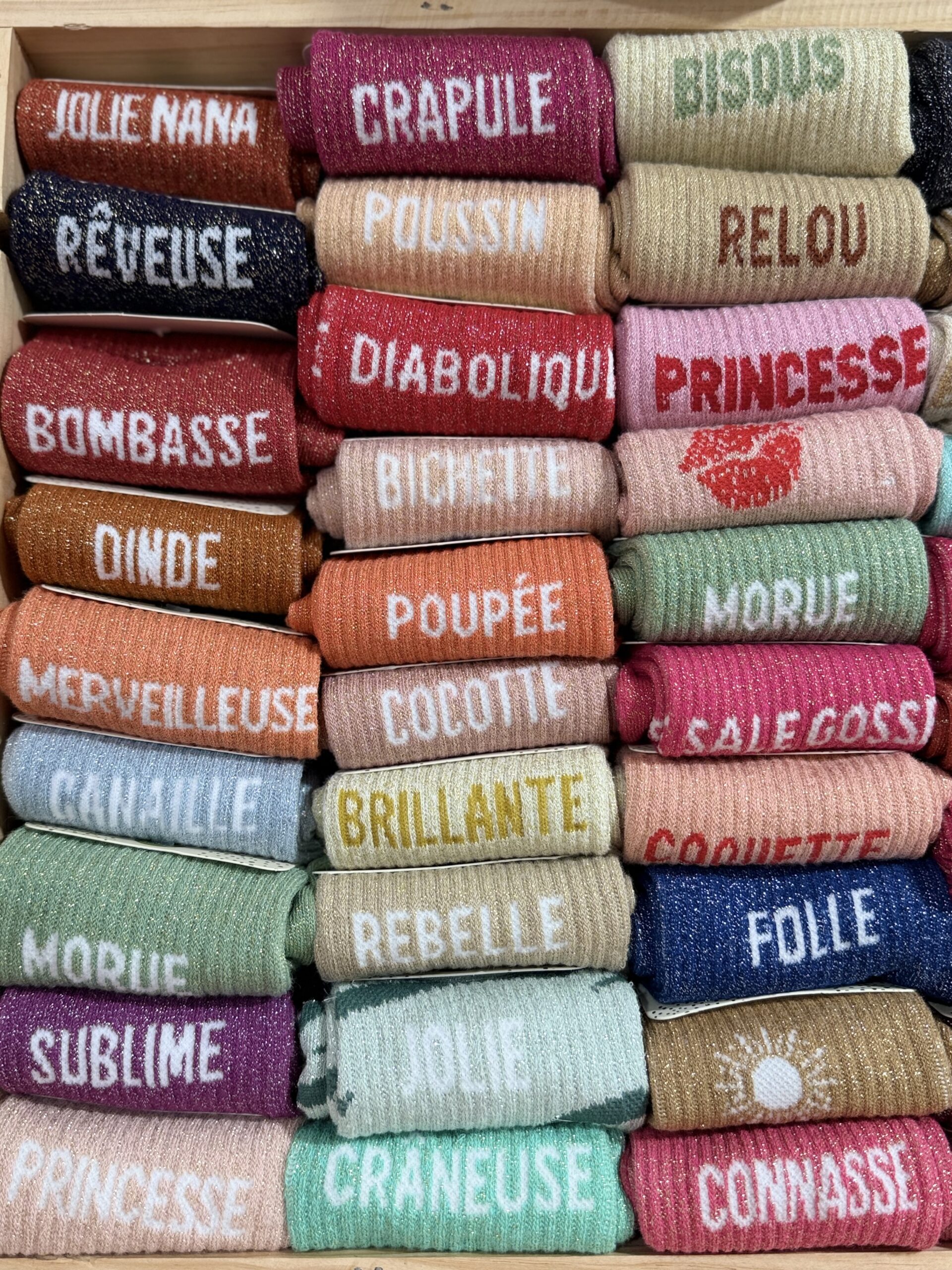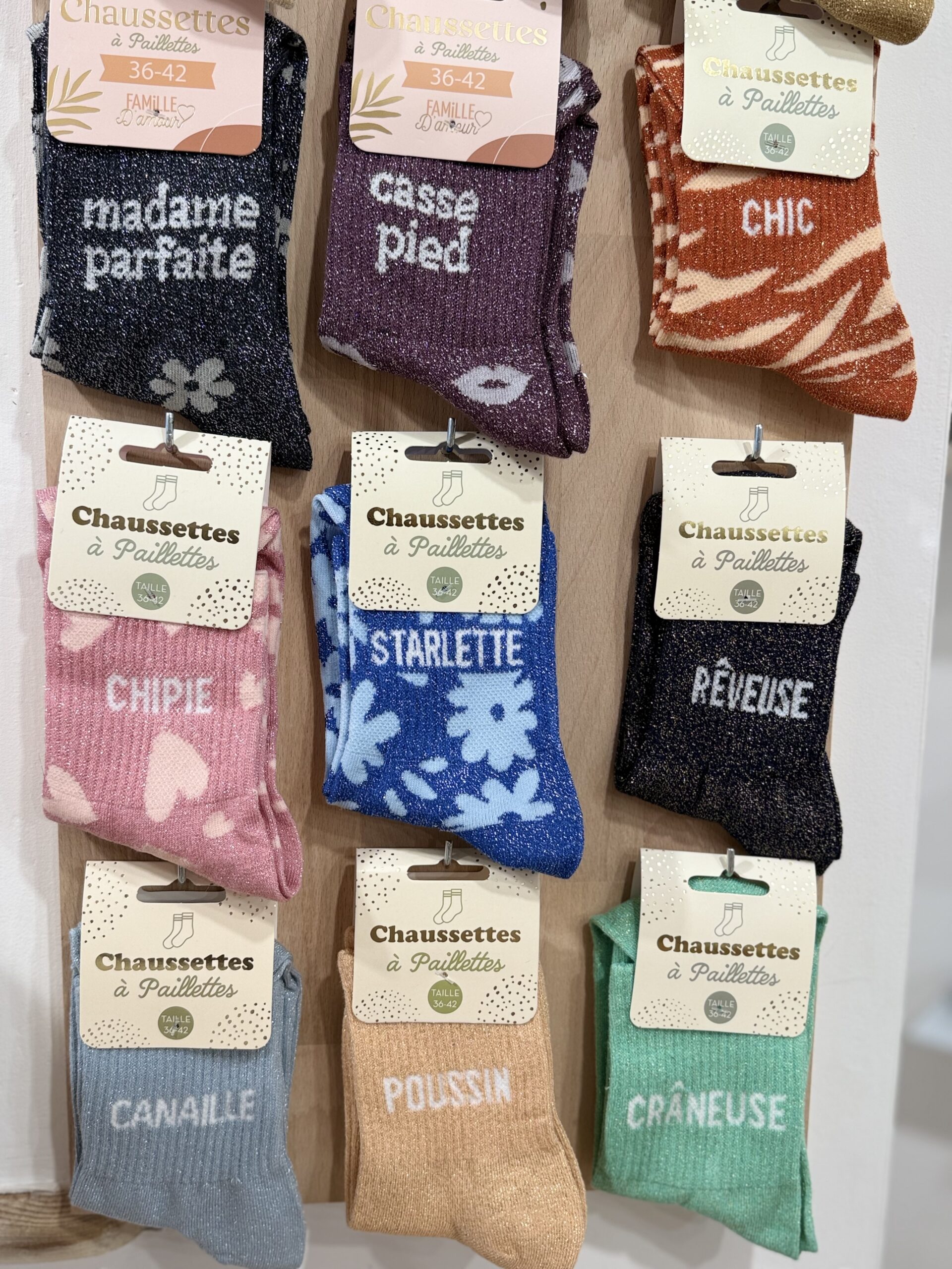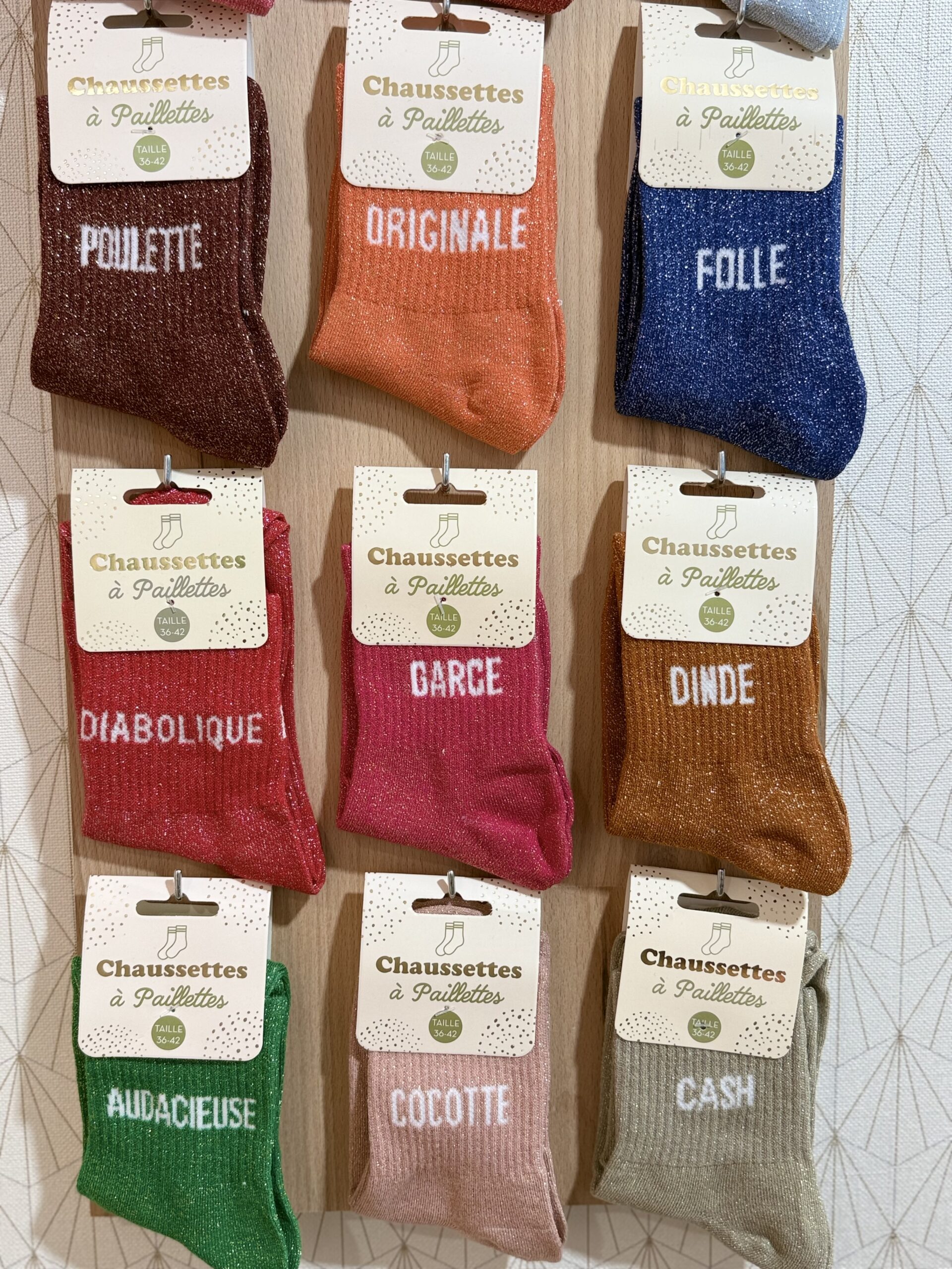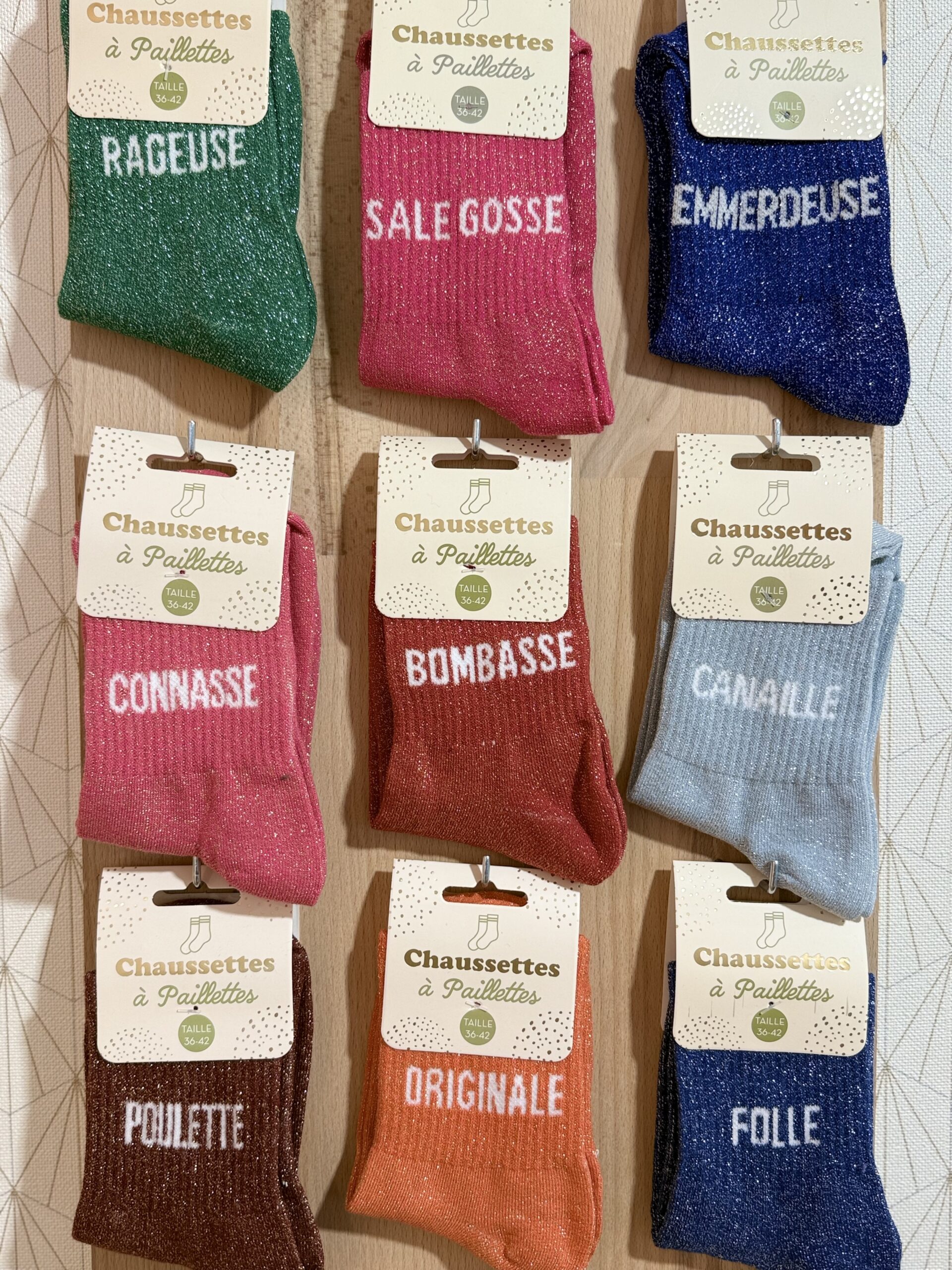 Chaussettes à Paillettes – Messages fun & brillants (Taille 36-42)