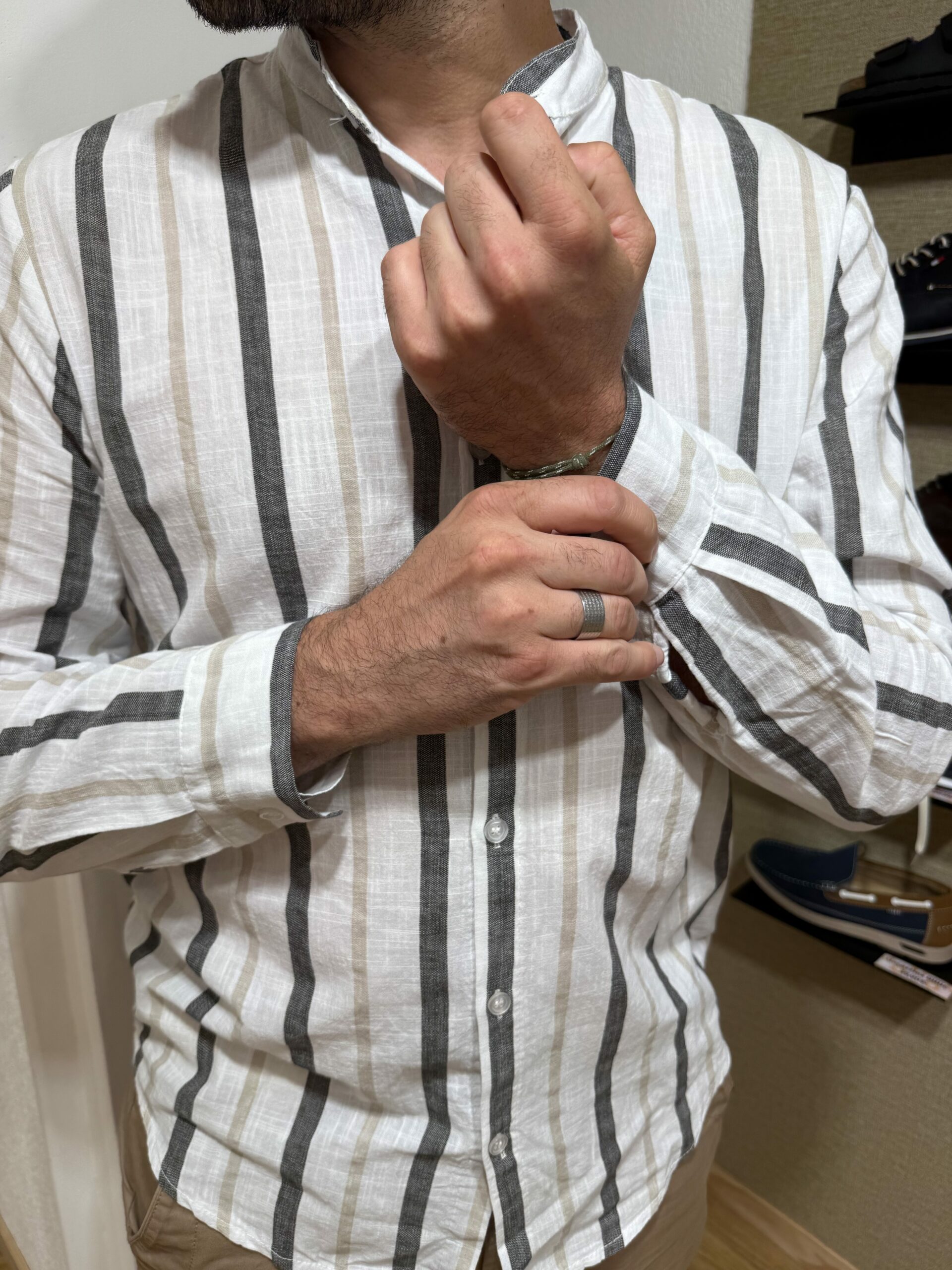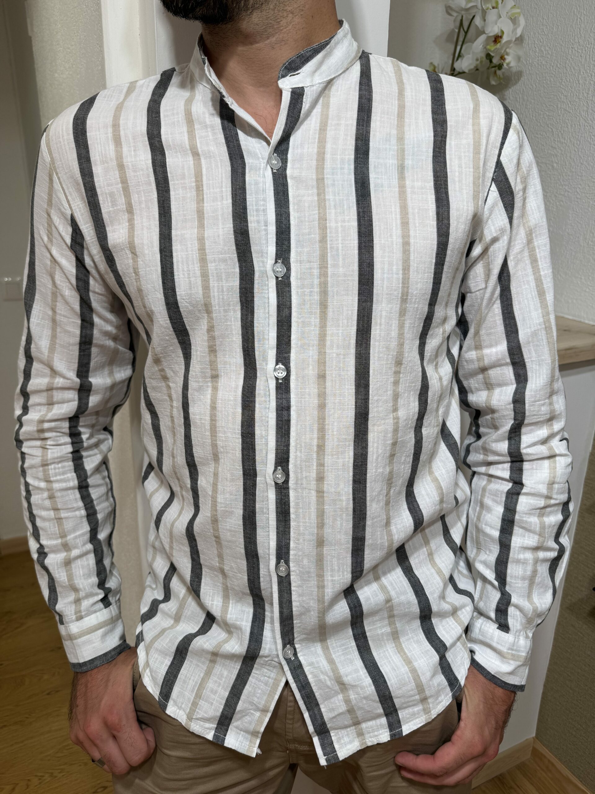 Apportez une touche de fraîcheur et d’élégance à vos tenues avec cette chemise à rayures verticales au col mao, à la fois moderne et décontractée. Confectionnée dans un tissu léger et respirant, elle est parfaite pour les journées ensoleillées ou les soirées d’été.