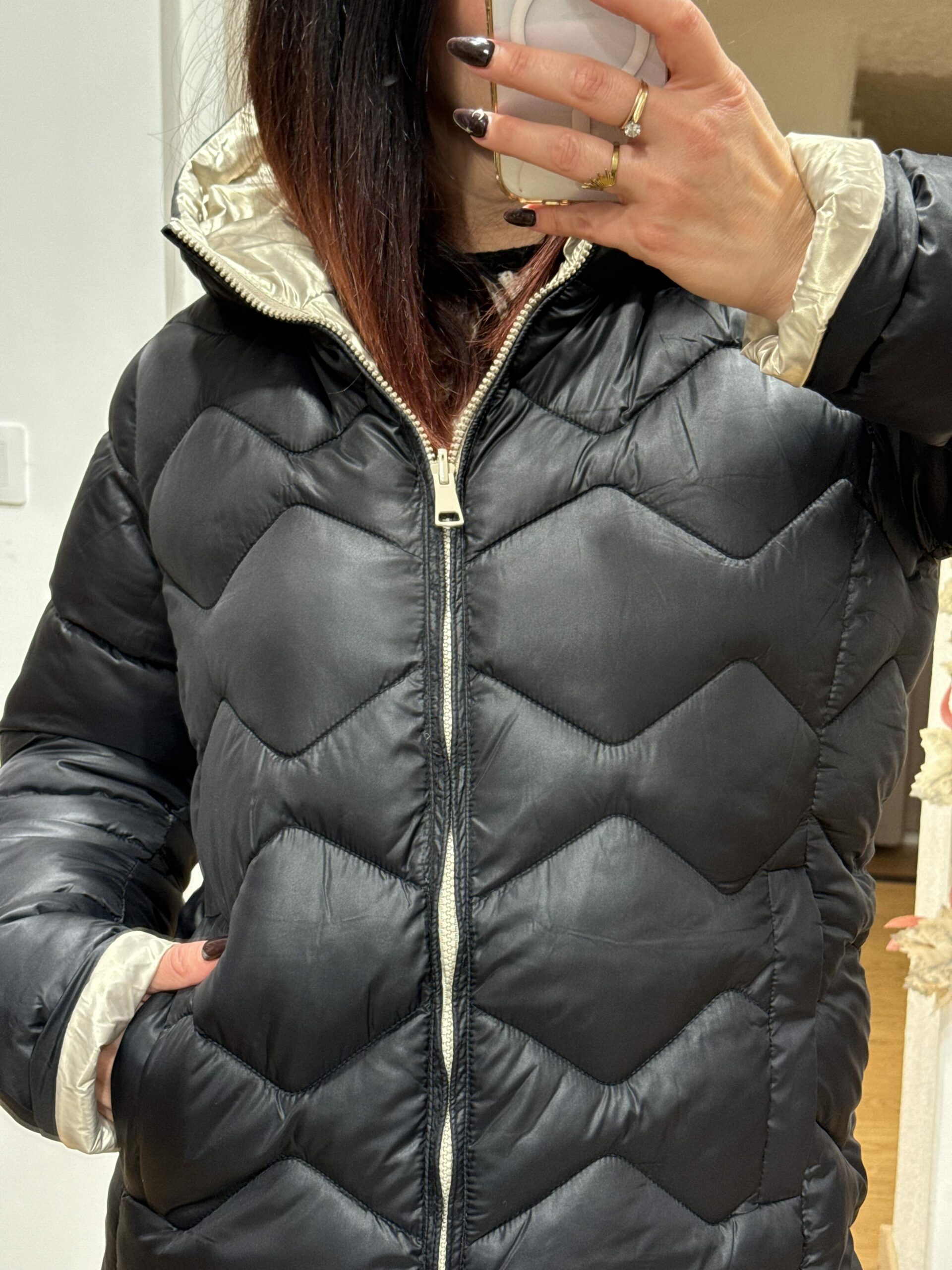 Ultra légère et chaude, elle conjugue confort et style avec son intérieur noir contrasté et sa coupe mi-longue flatteuse.