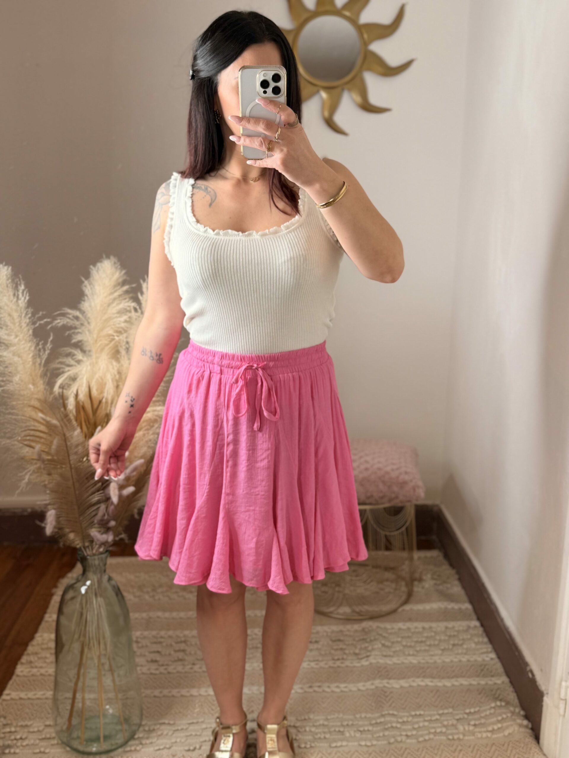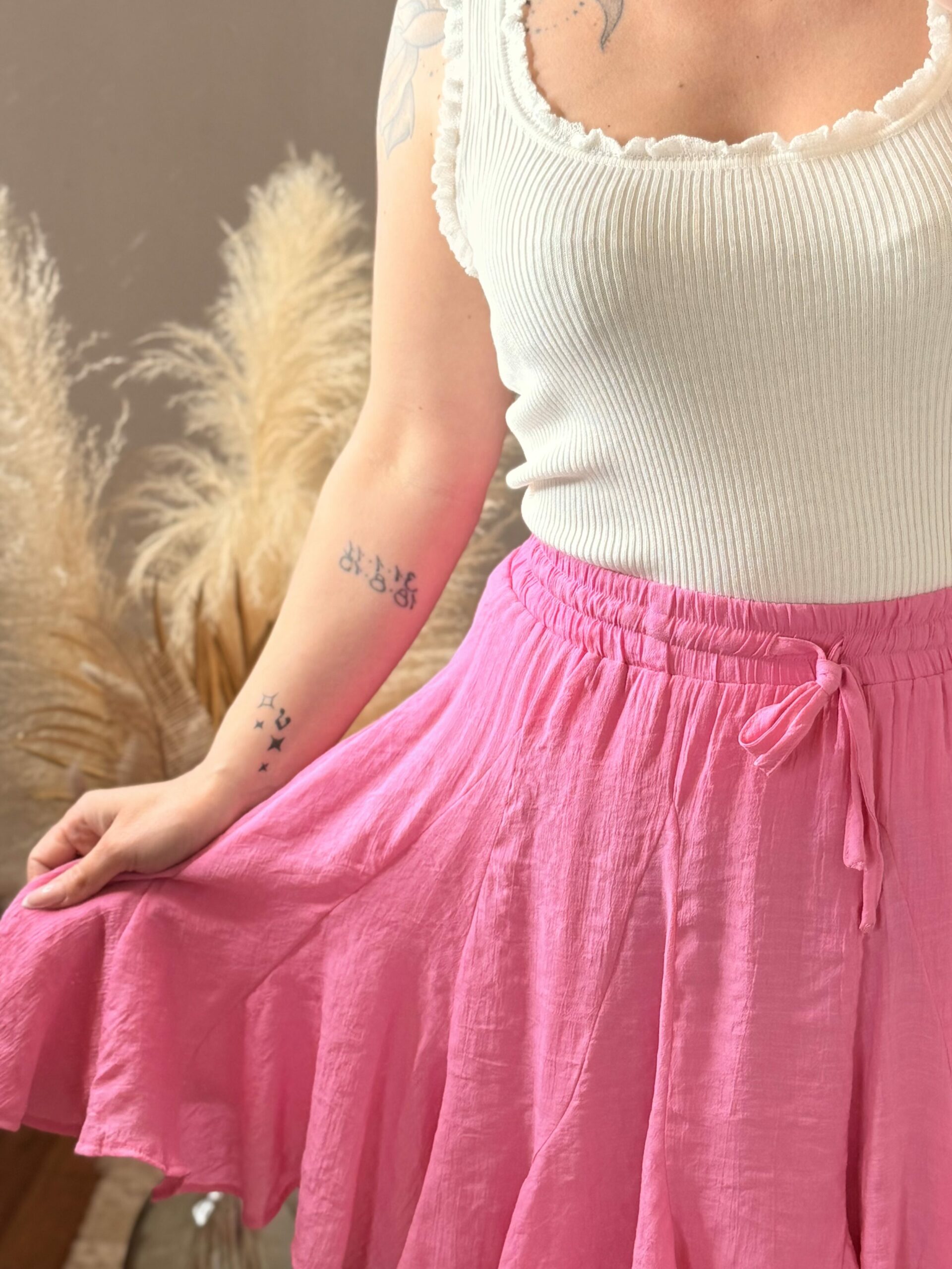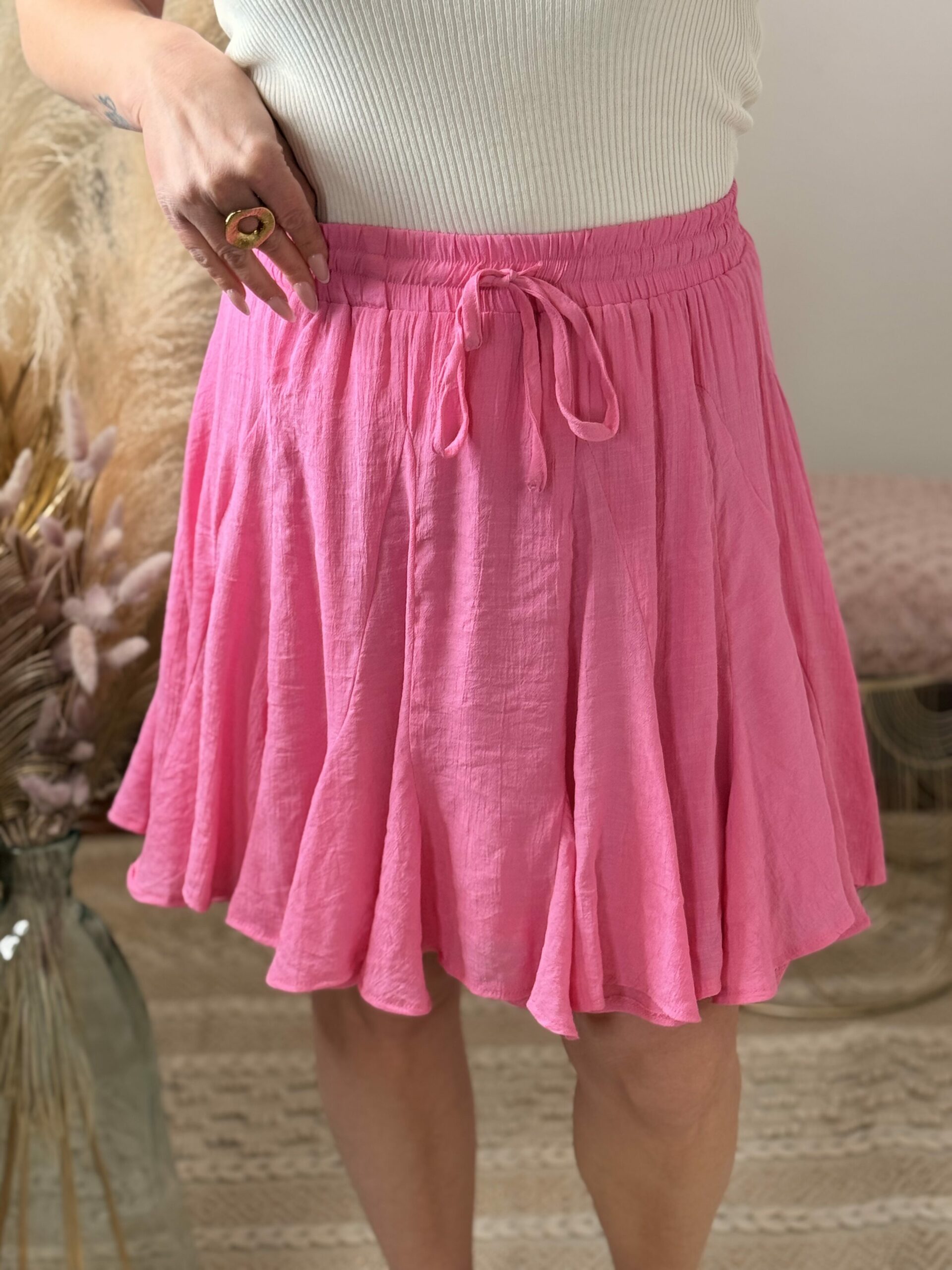La jupe Aélina est la pièce parfaite pour apporter de la fraîcheur et du mouvement à ton dressing. Avec son rose vibrant, elle attire le regard tout en restant élégante et facile à porter.