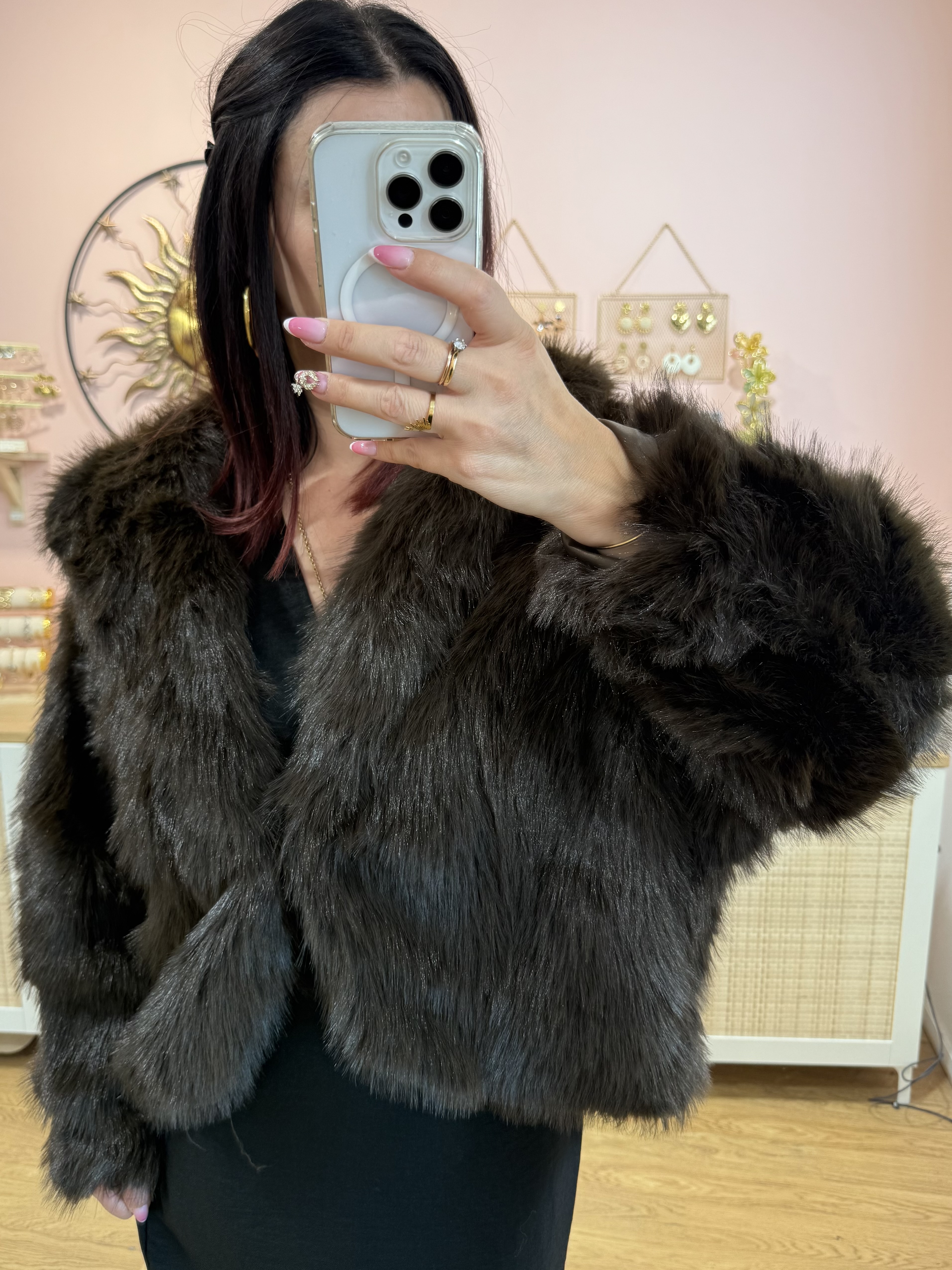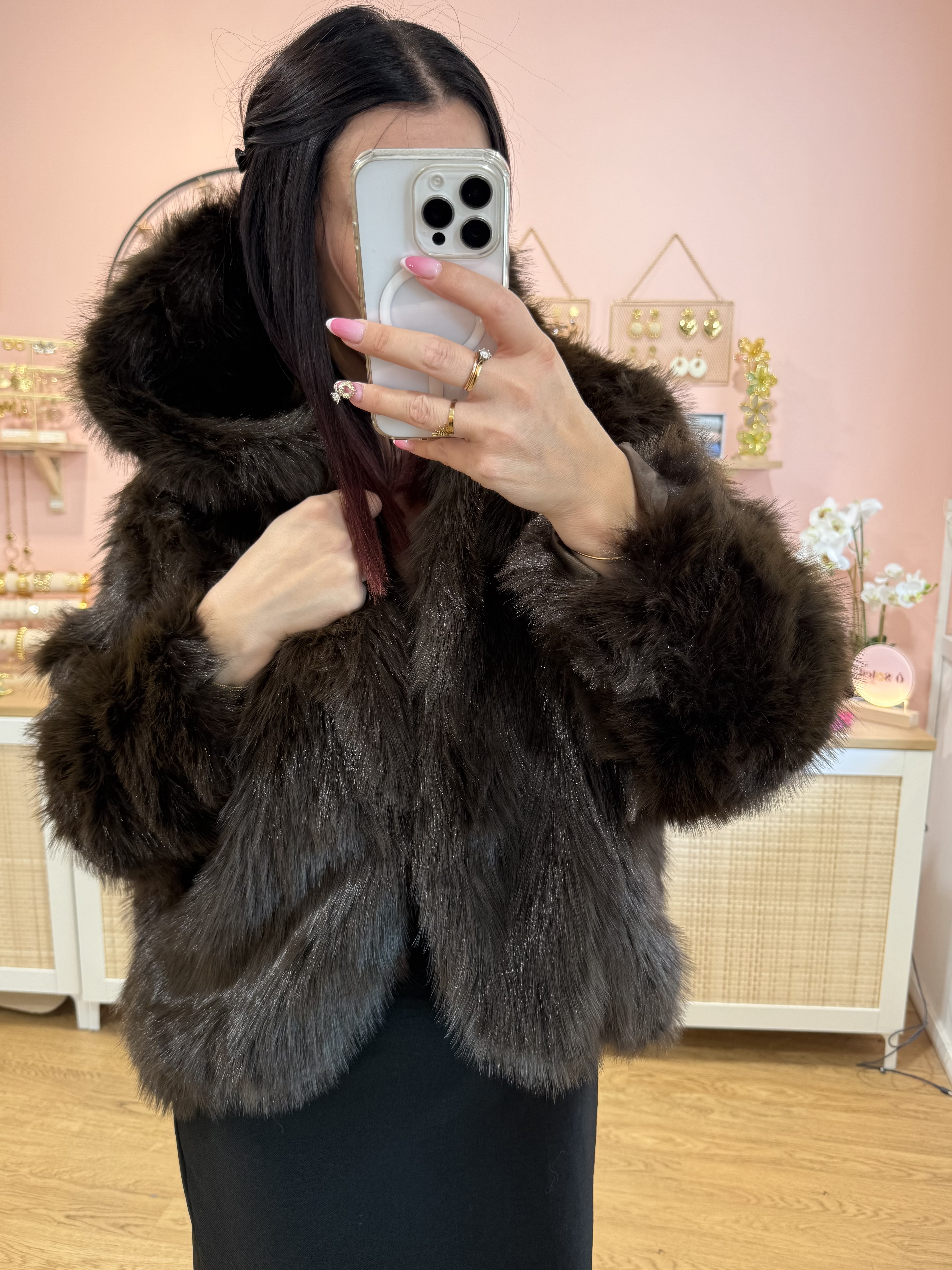 đ§„ Veste âGiuliaâ en fausse fourrure chocolat đ§„