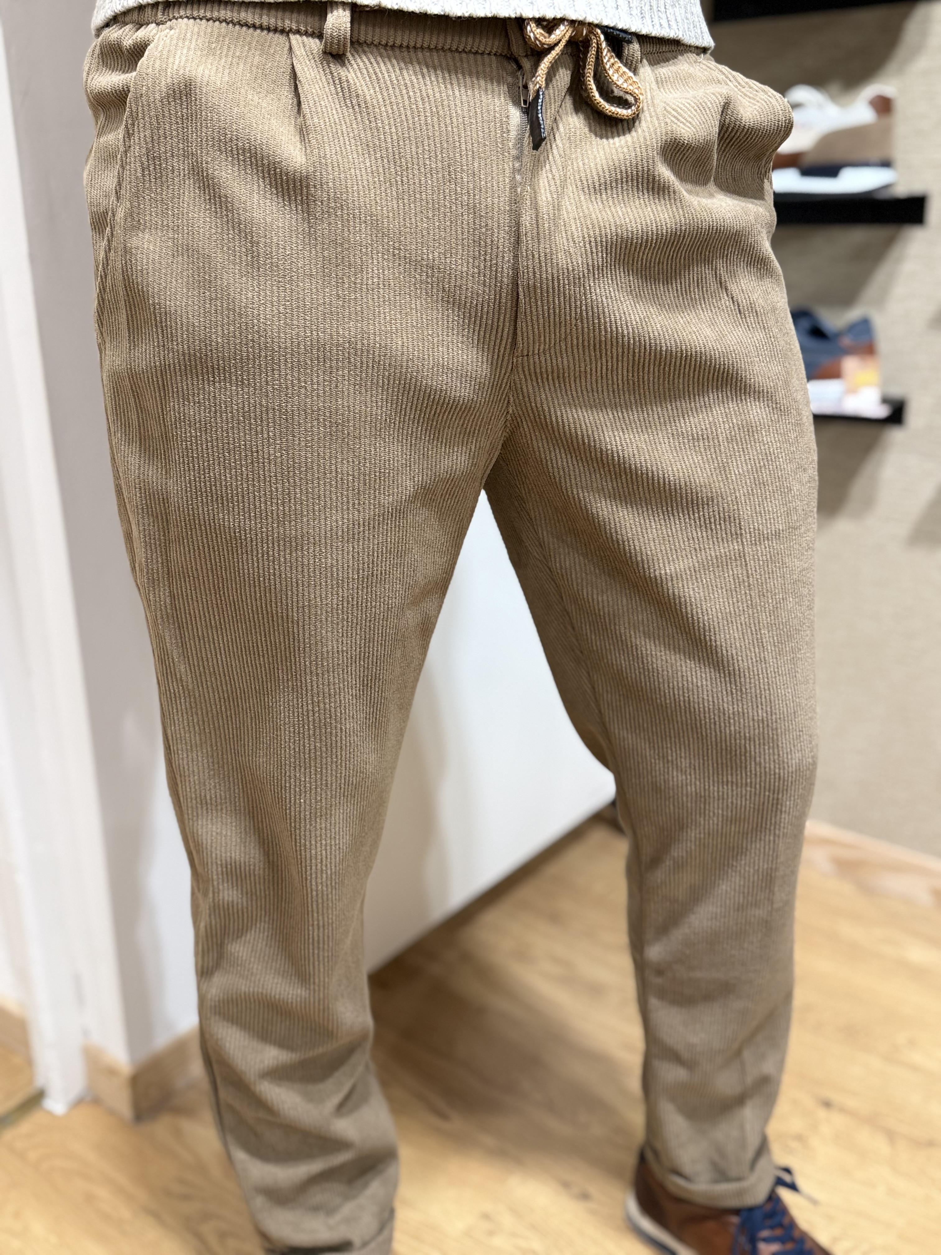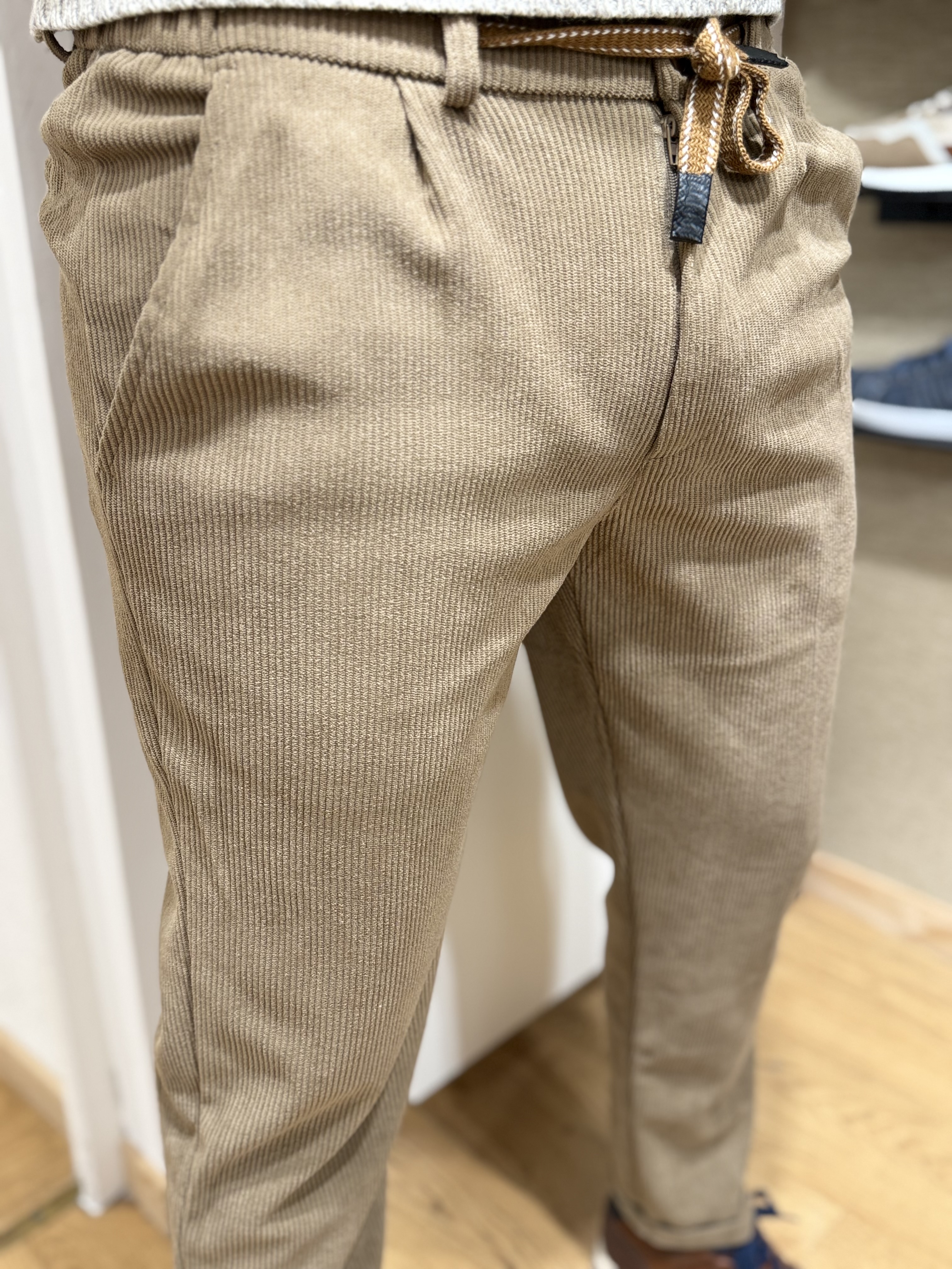 Sa coupe semi-slim affine la silhouette sans comprimer, tandis que sa ceinture tressée intégrée ajoute un détail chic et pratique. Léger, flexible et facile à assortir, il se porte aussi bien pour une journée détente que pour un look plus travaillé avec une chemise ou un pull.