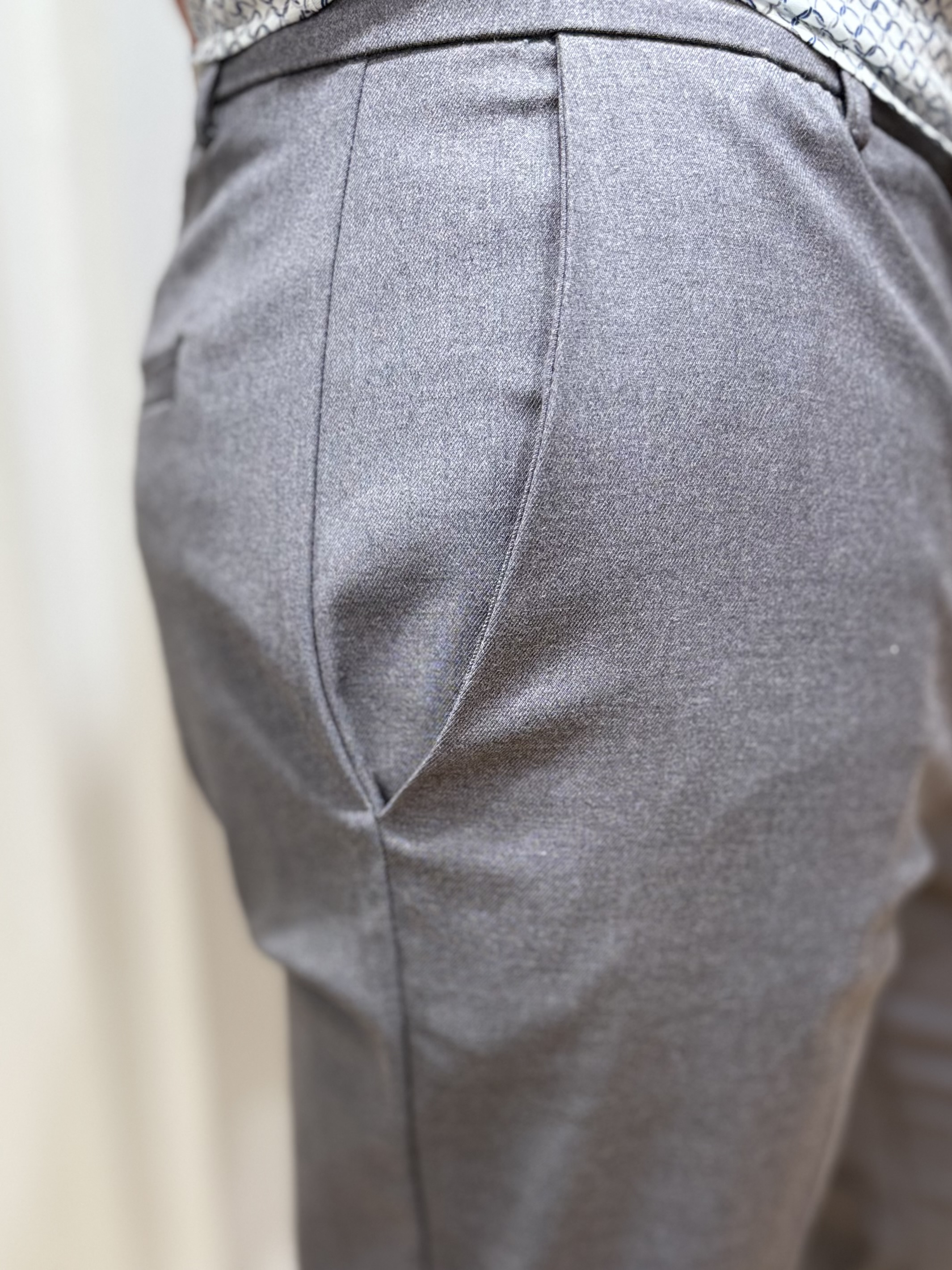 Le pantalon homme Giulio allie confort et raffinement avec sa coupe ajustée qui allonge la silhouette. Sa teinte grise intemporelle en fait une pièce polyvalente, idéale aussi bien pour une tenue professionnelle que pour une allure casual chic le week-end.