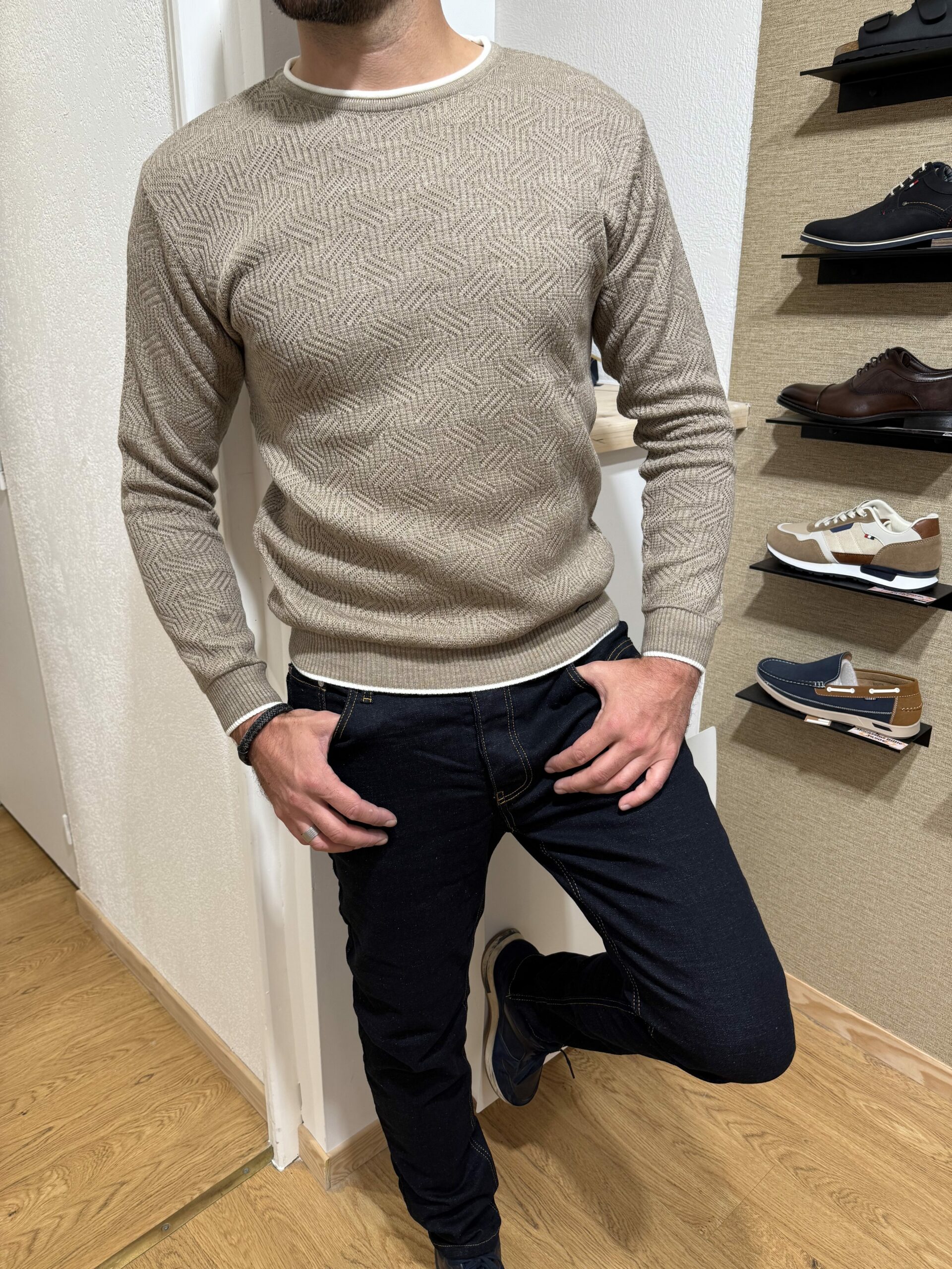 Pull fin à motifs géométriques – Élégance discrète