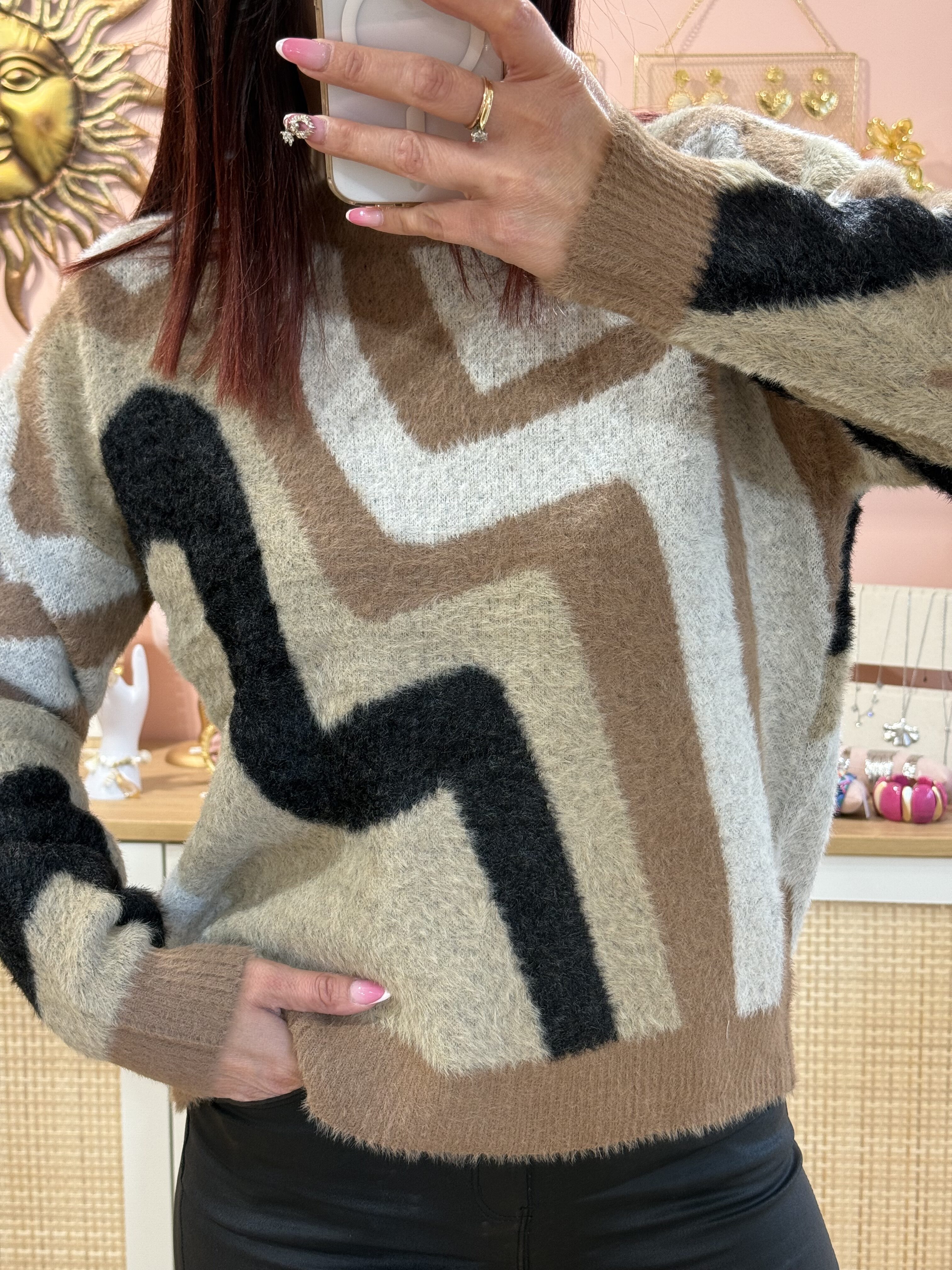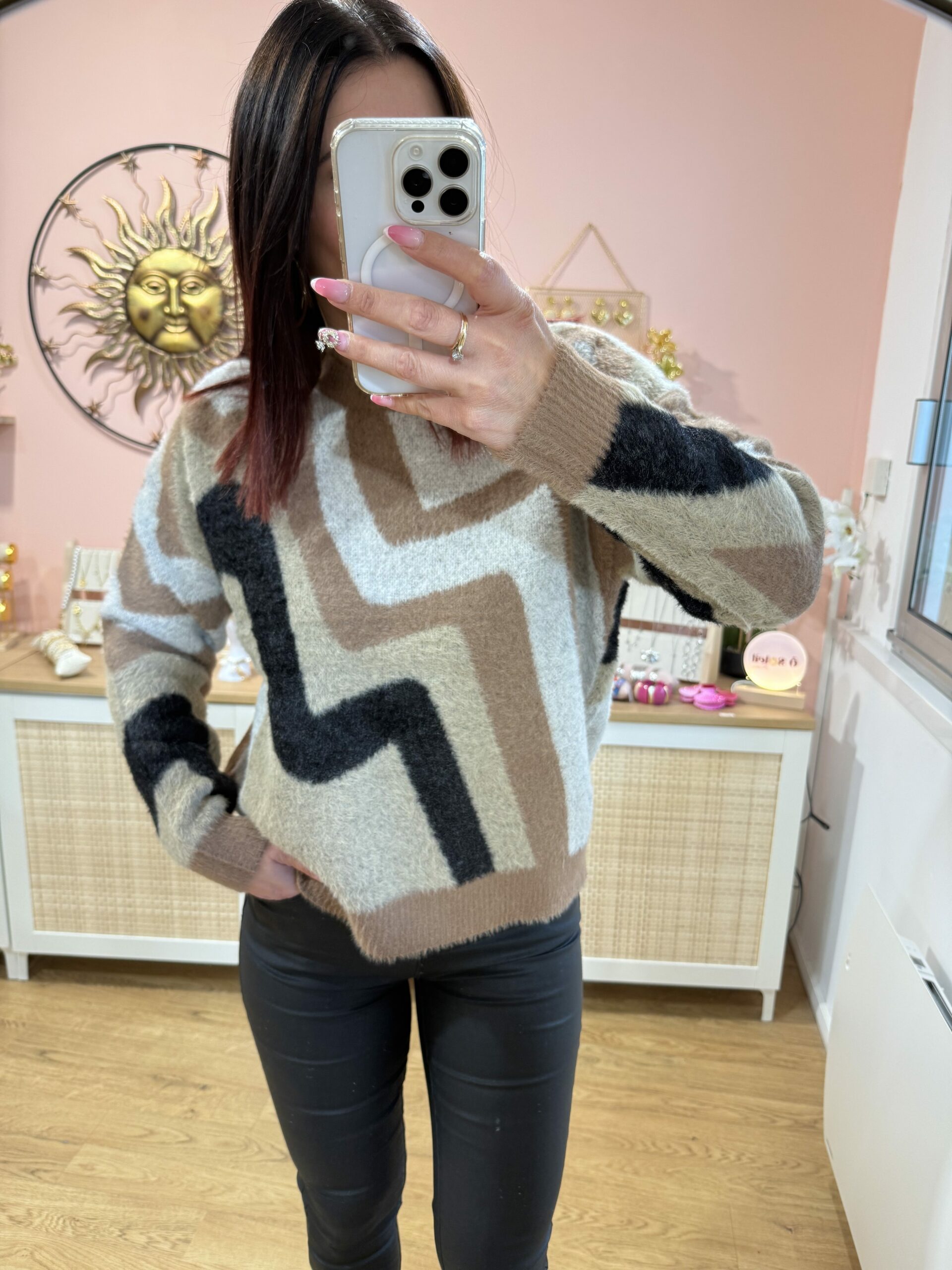 Le pull Nora est la pièce tendance et cosy qui apporte du style à vos journées d’hiver. Confectionné dans une maille douce et chaude, il séduit par son motif graphique audacieux et moderne qui joue sur les contrastes de couleurs. Avec sa coupe droite, il allie confort et allure chic, parfait pour composer des looks aussi bien casual que sophistiqués.
