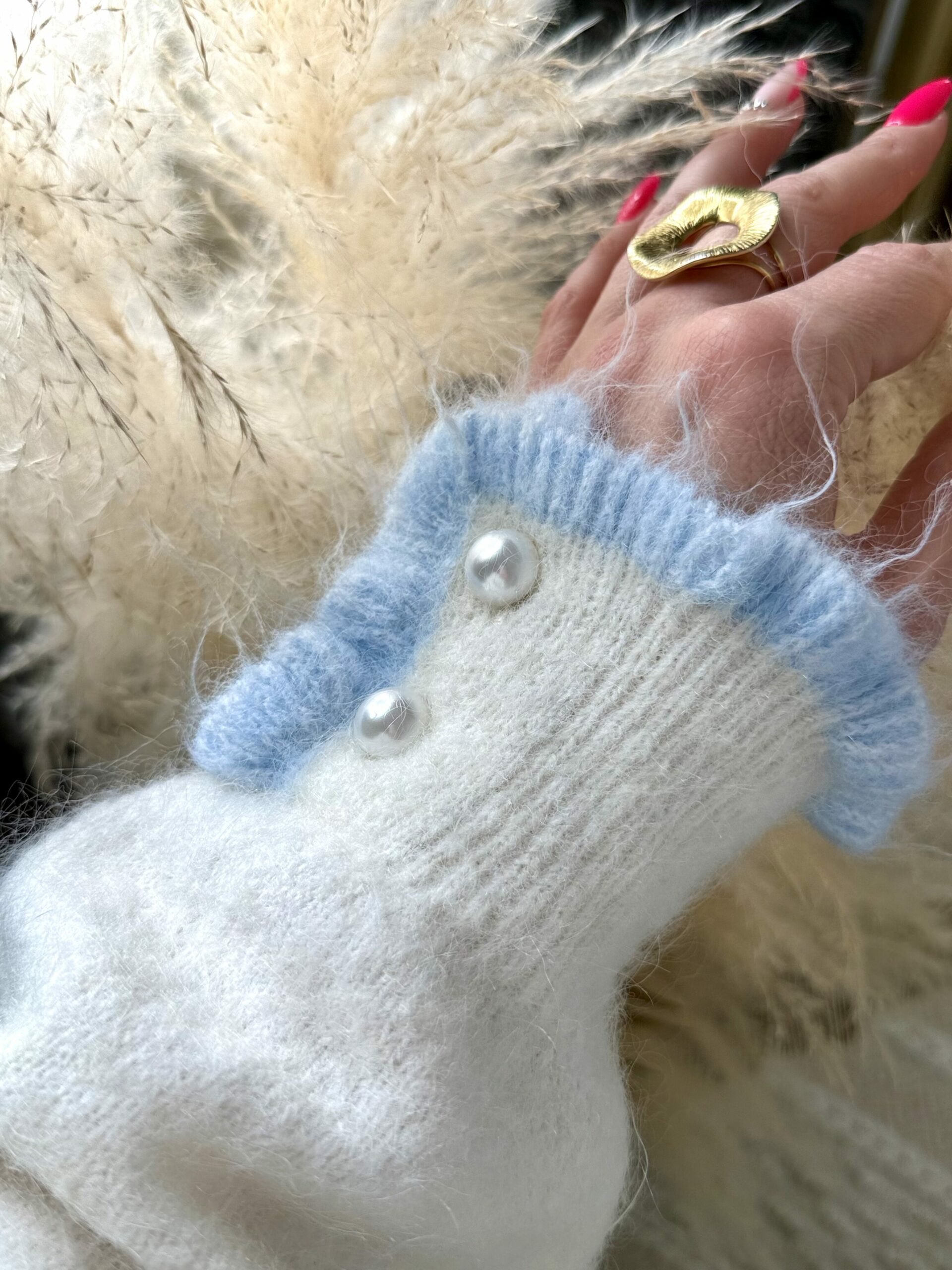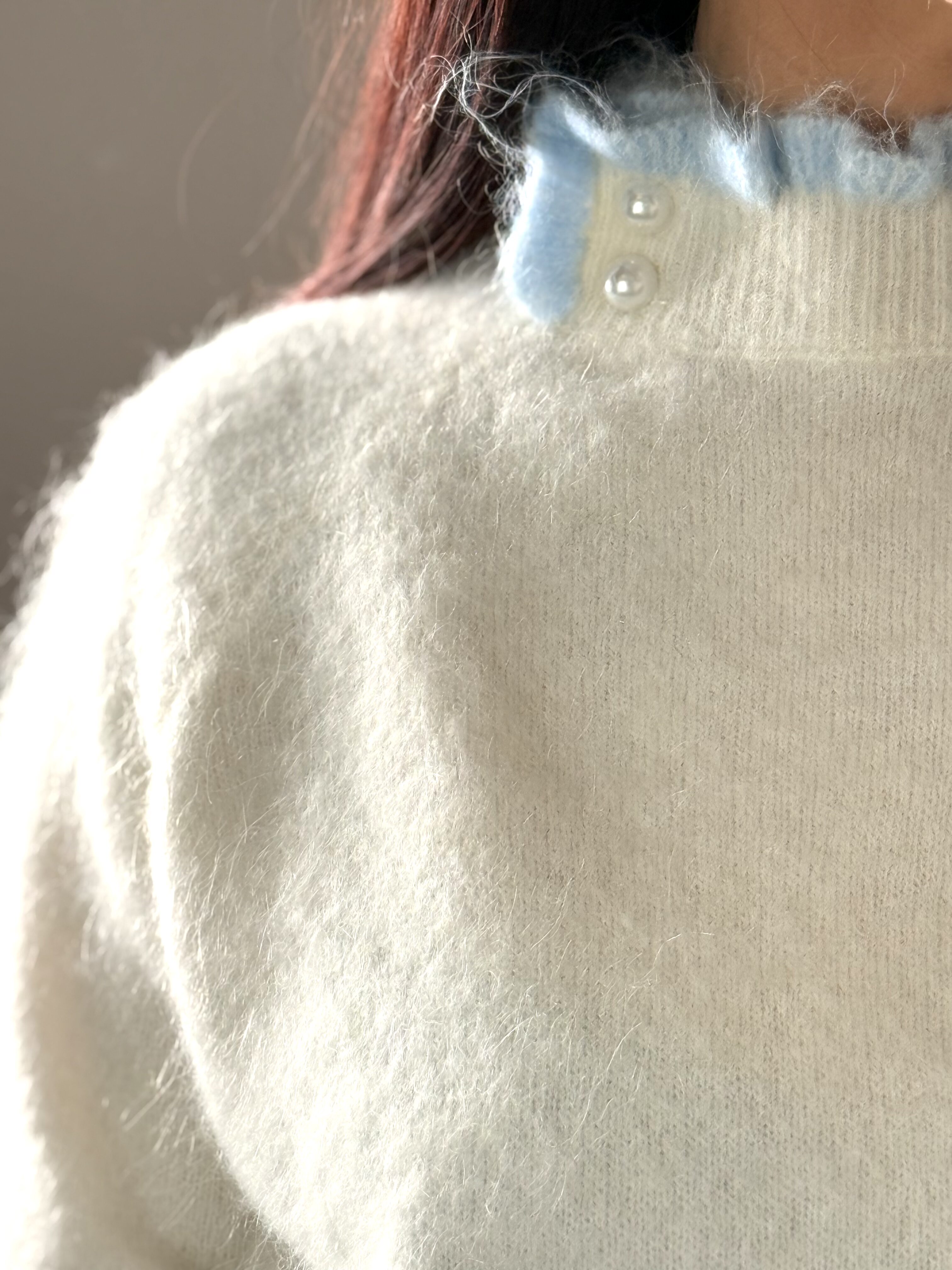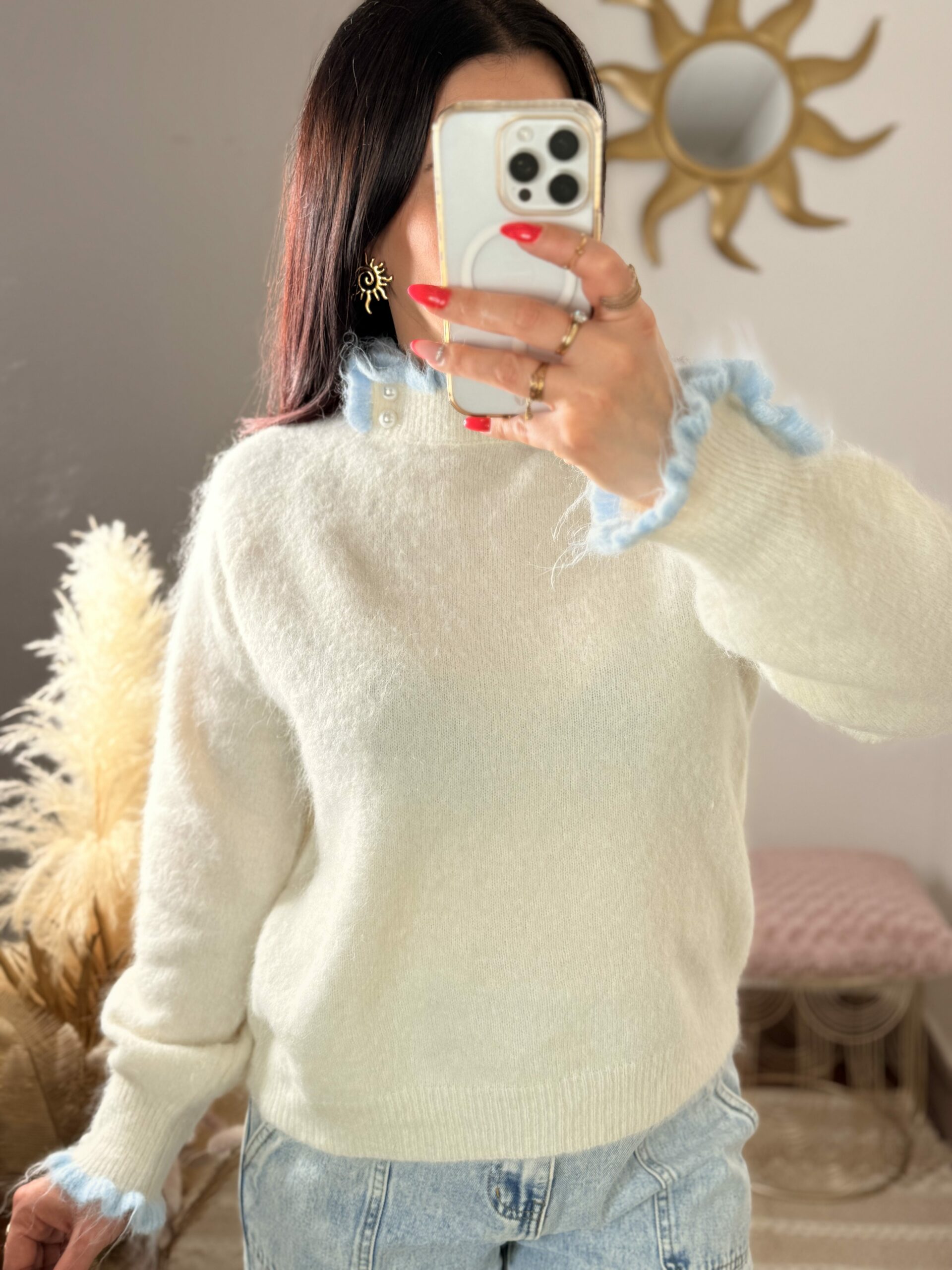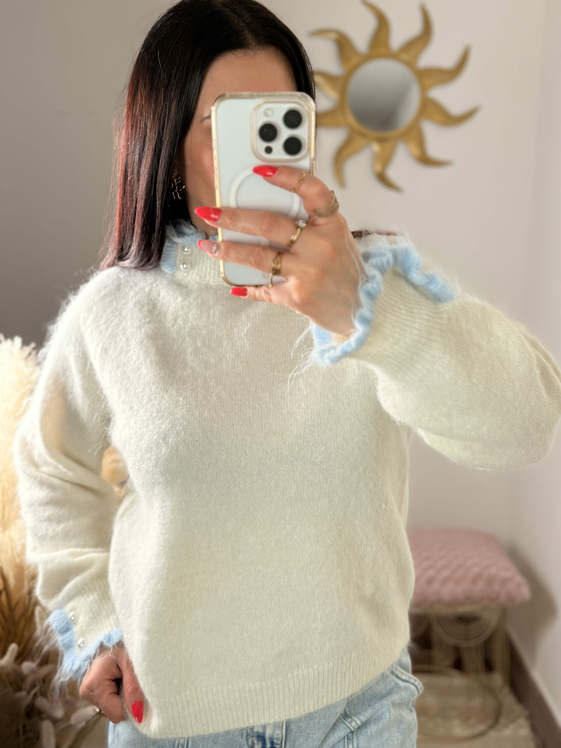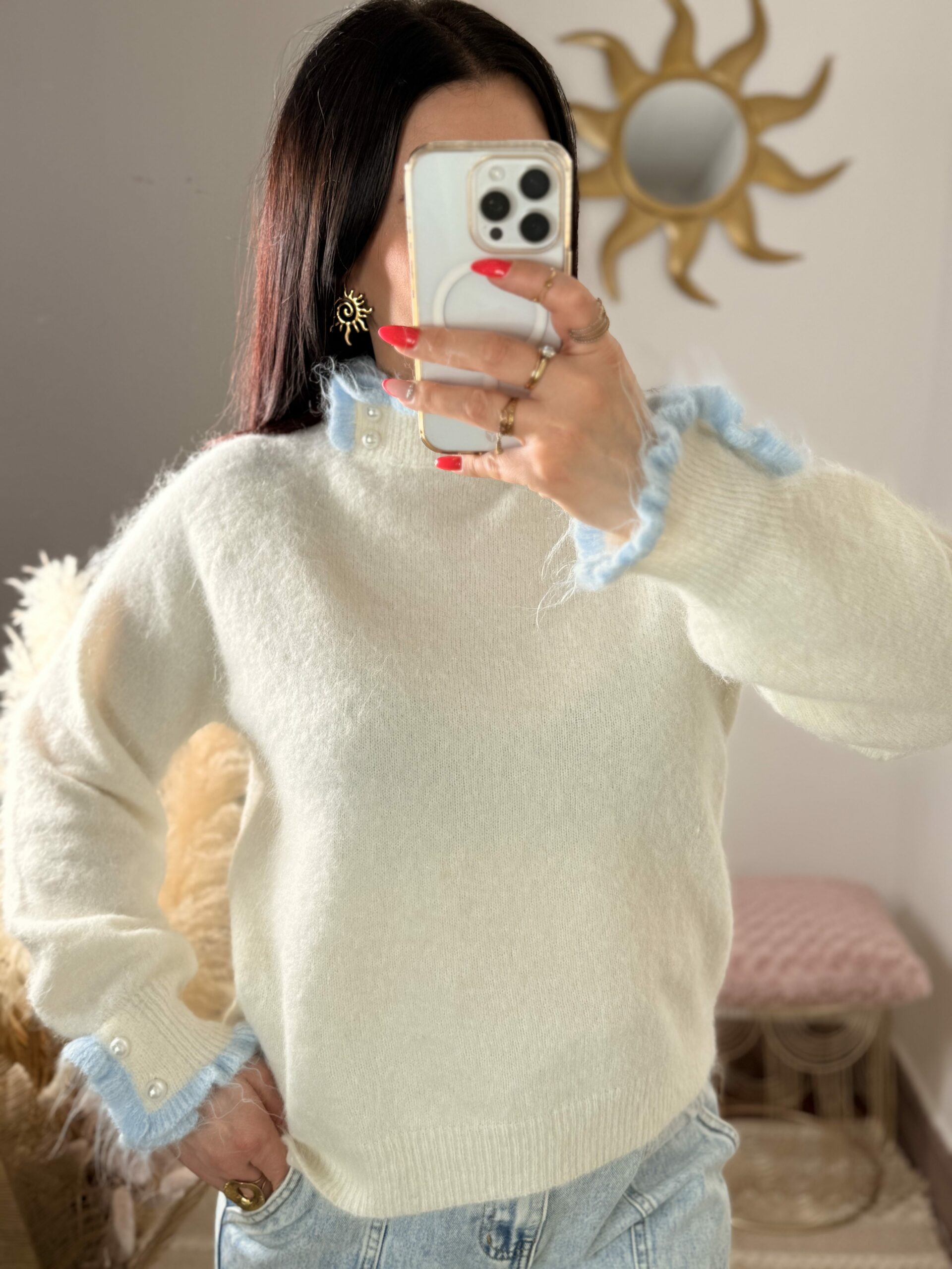 Pull Romy – Écru & Bleu Ciel