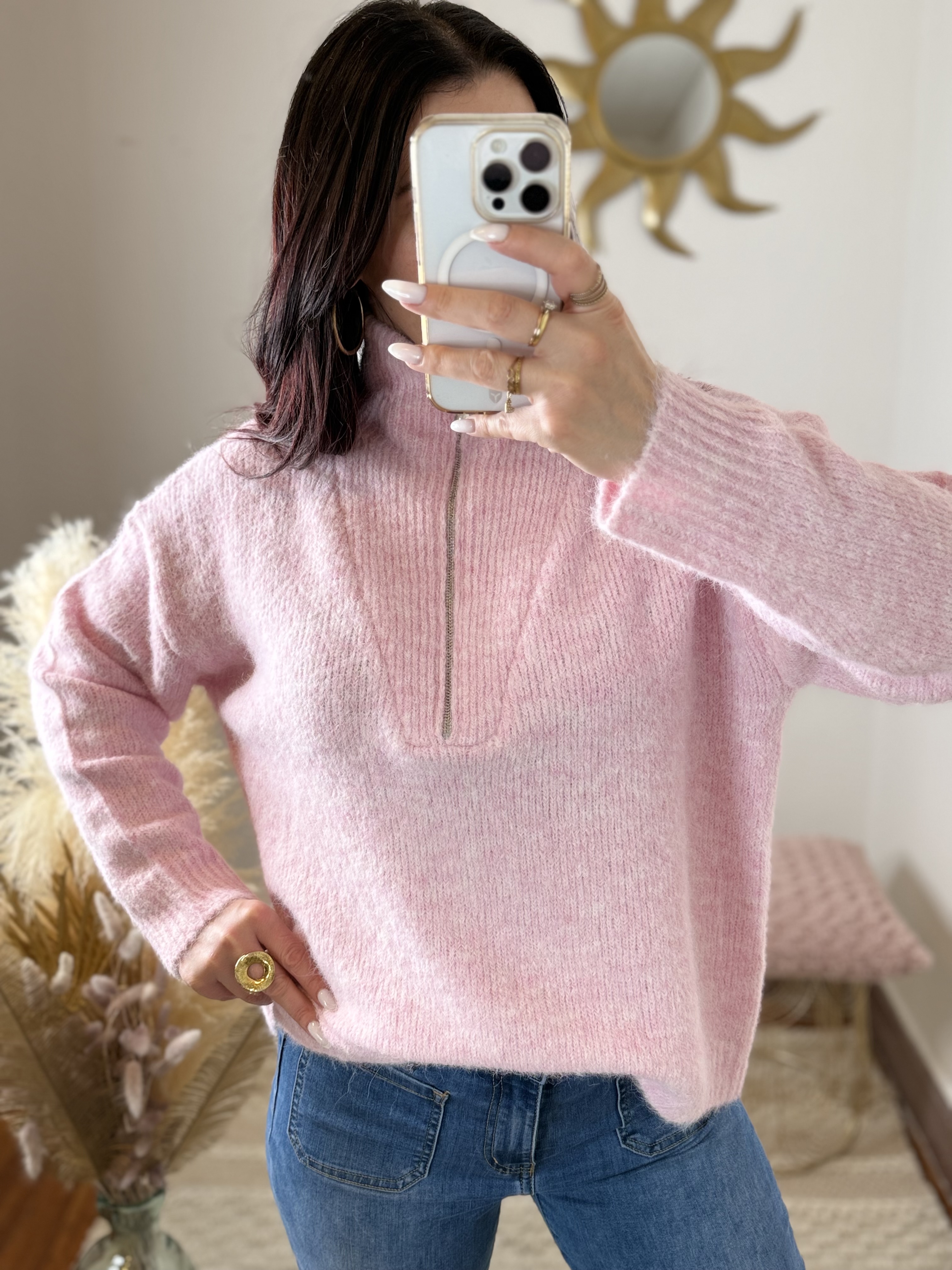 Le pull Rosalia est une véritable caresse de douceur. Sa maille moelleuse et légèrement chinée enveloppe la silhouette avec confort, tandis que son rose tendre apporte une touche féminine, lumineuse et résolument tendance.