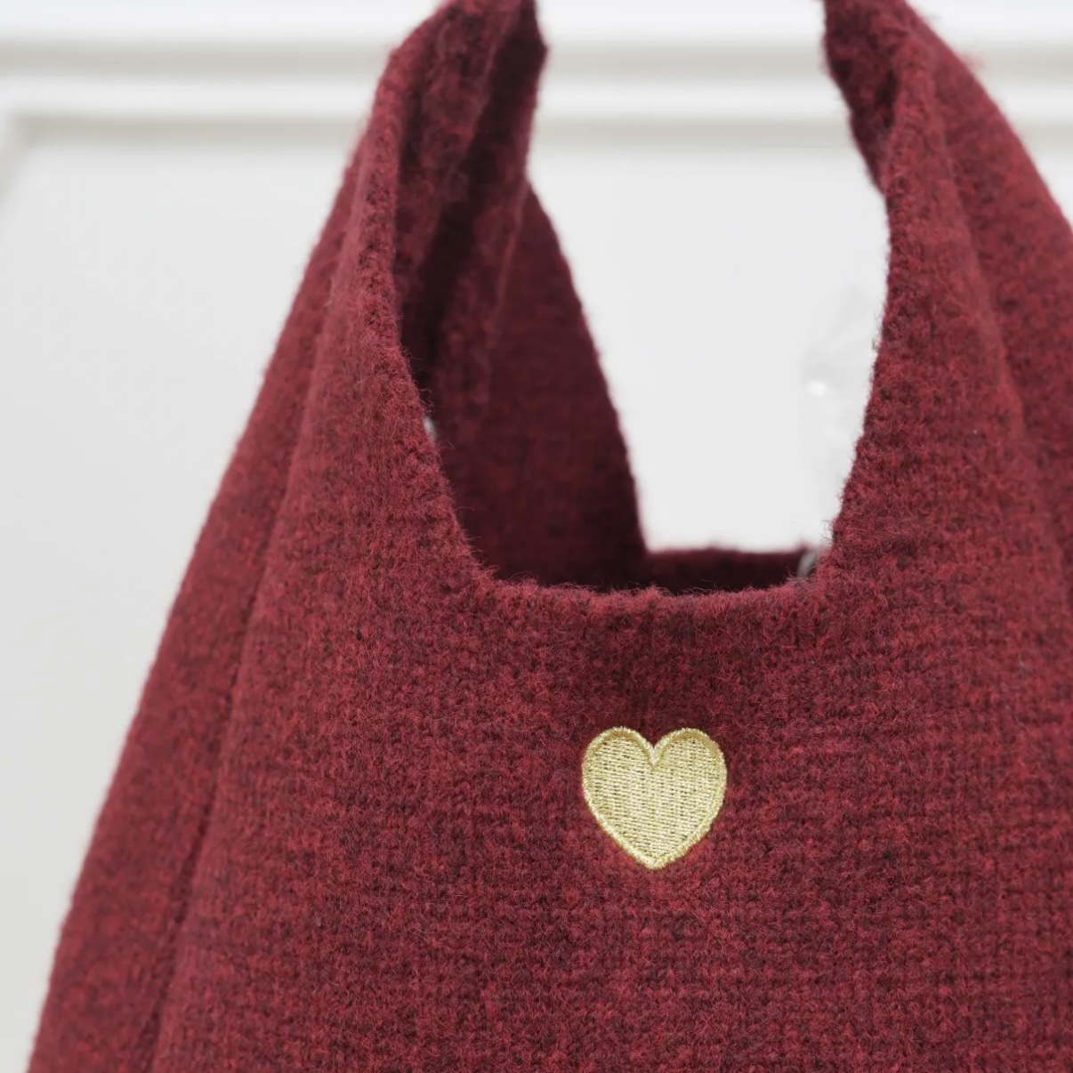 Apportez une touche de douceur et d’originalité à vos looks avec le sac Ambrine ✨. Confectionné dans une maille texturée élégante et réhaussé d’un cœur brodé doré, ce modèle est à la fois tendance et pratique. Sa forme souple et sa poignée intégrée en font un indispensable du quotidien, facile à porter aussi bien à l’épaule qu’à la main.