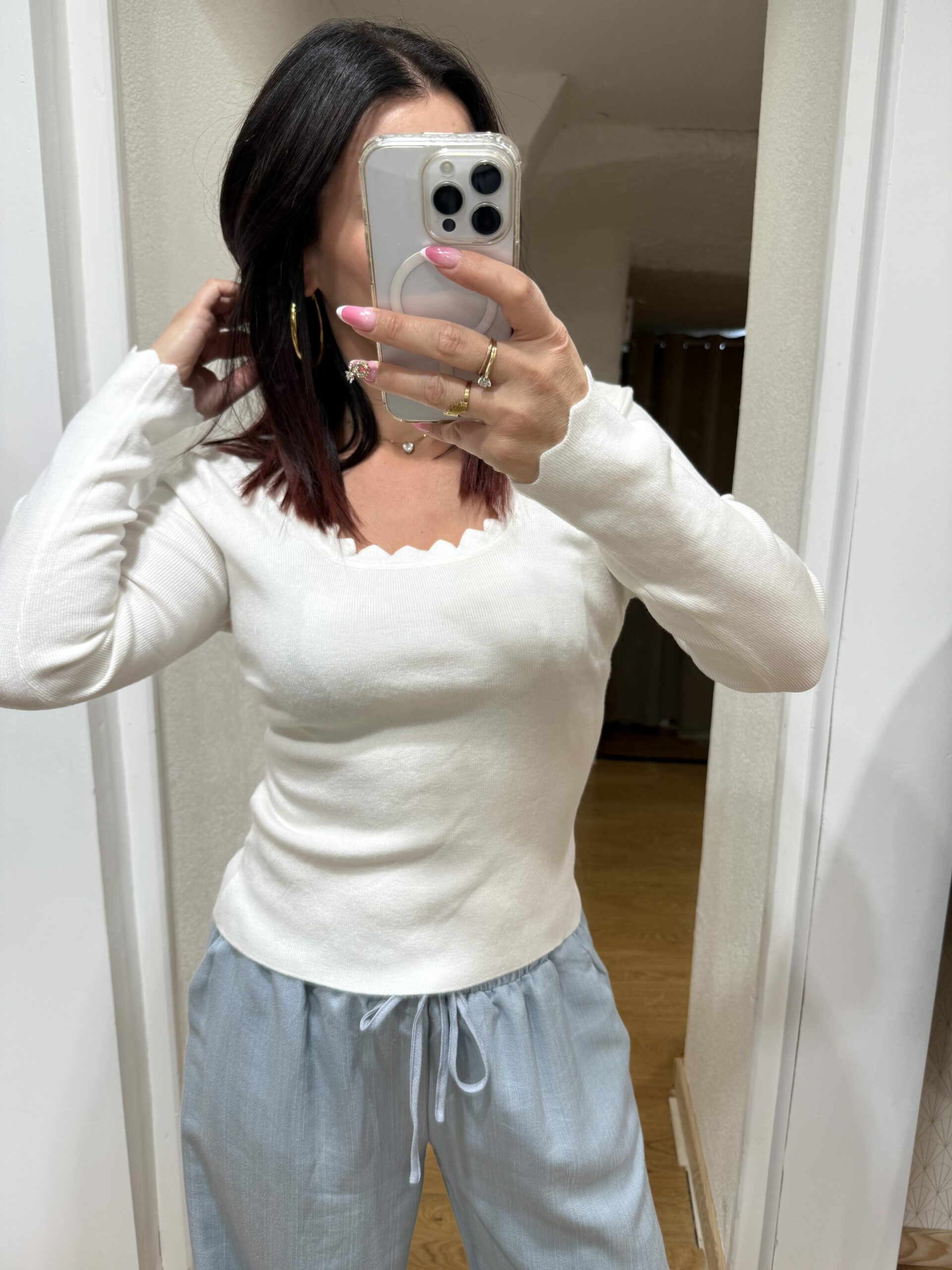 Le top Véa est une pièce intemporelle qui combine simplicité et raffinement. Avec sa coupe ajustée et son col festonné délicatement travaillé, il apporte une touche de féminité subtile et sophistiquée. Ses manches longues et son tissu doux en font un allié idéal pour toutes les saisons, que ce soit porté seul ou glissé sous une veste.