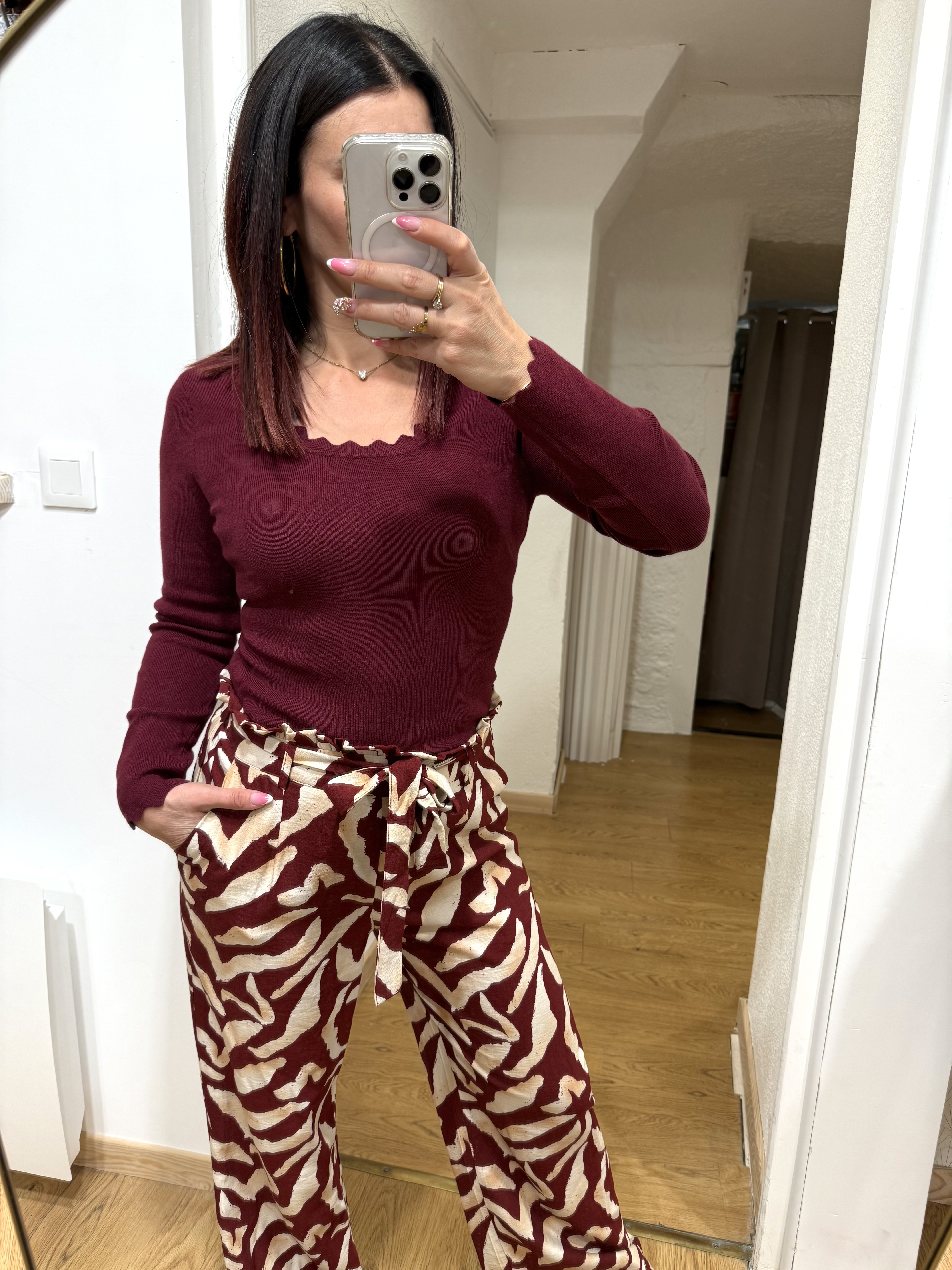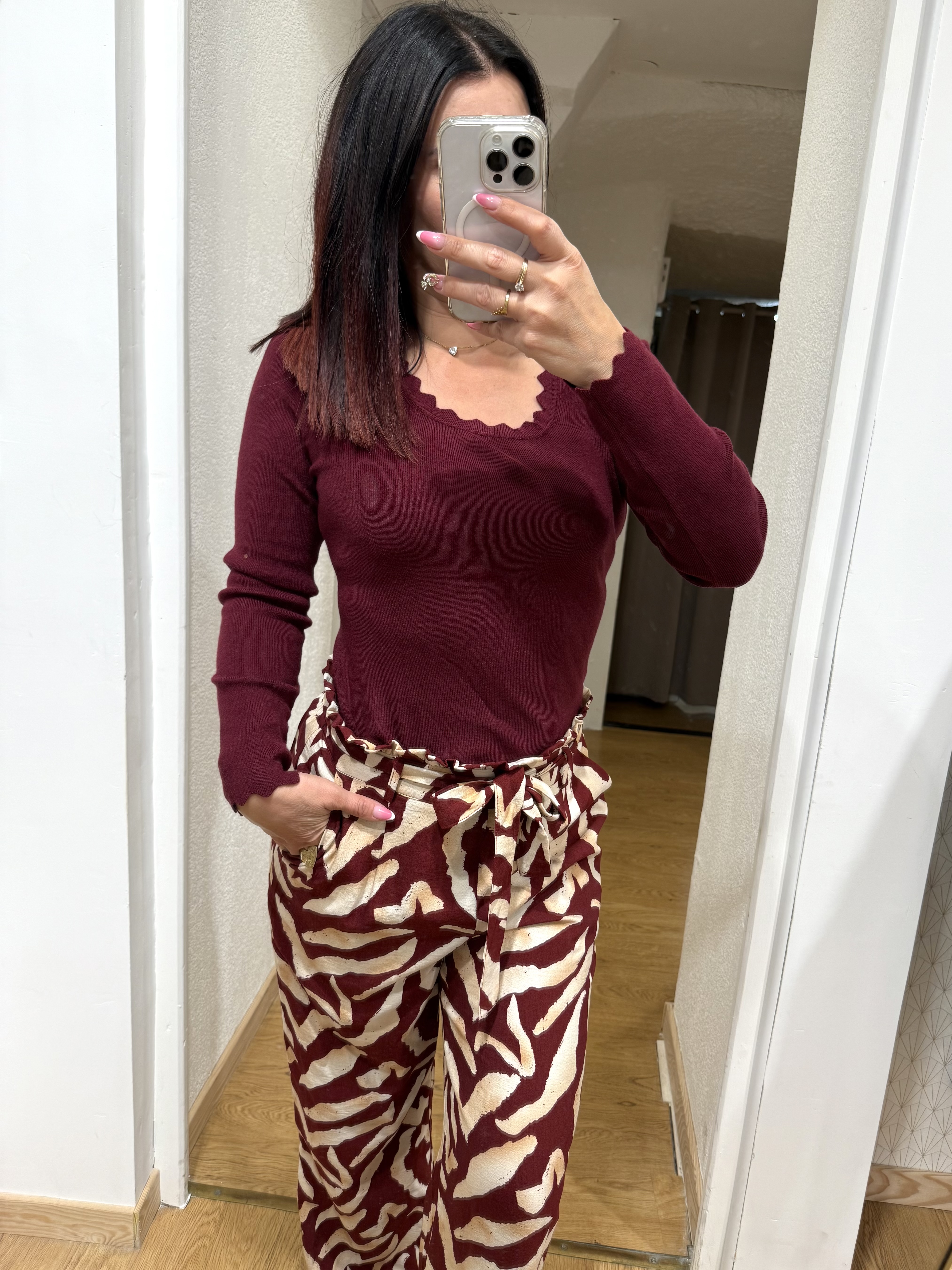 Disponible en trois coloris sur le site – noir classique, blanc lumineux et bordeaux profond – il s’adapte à toutes vos envies et occasions : du look décontracté avec un jean, à une allure plus habillée avec une jupe ou un pantalon chic.