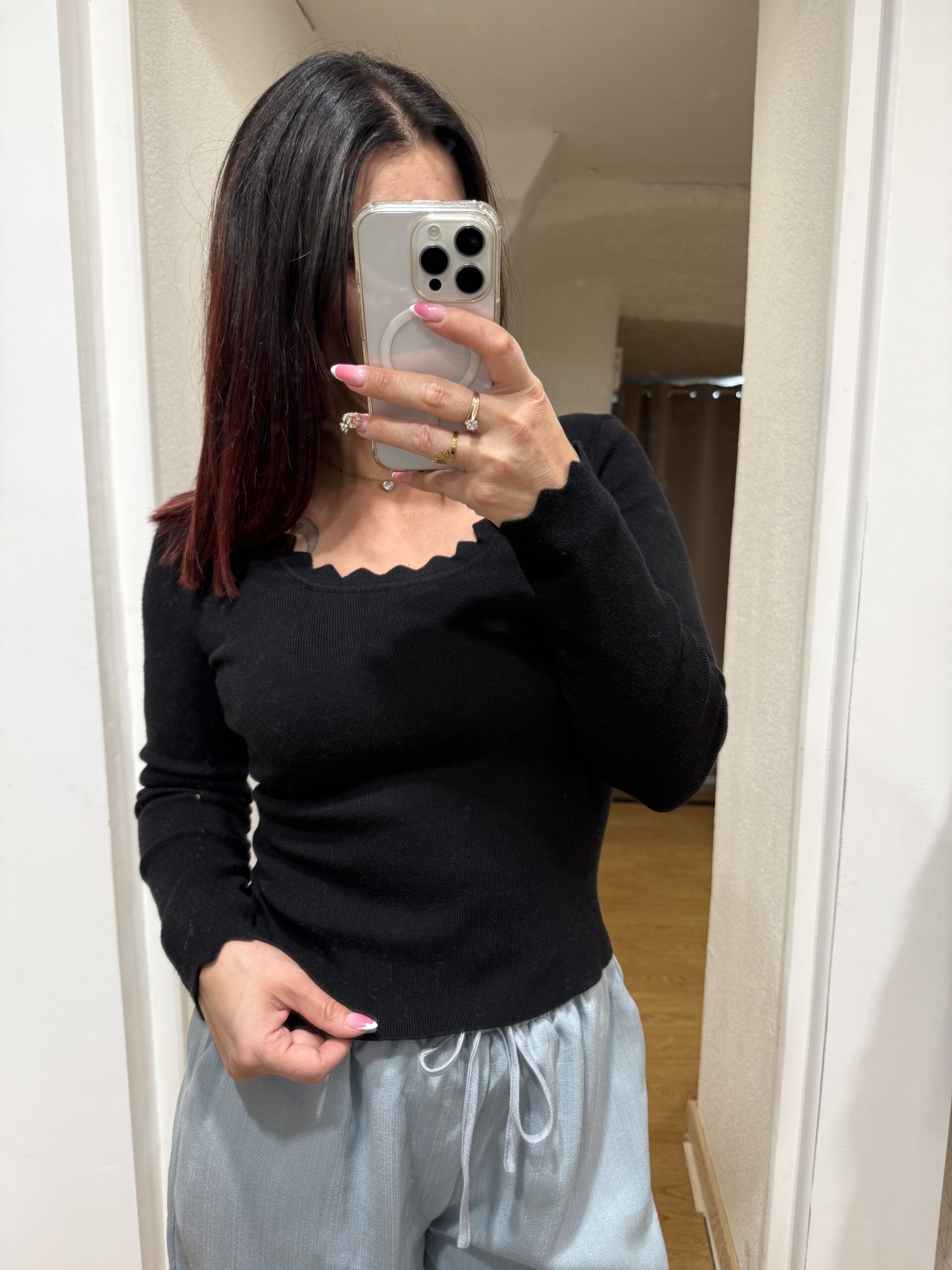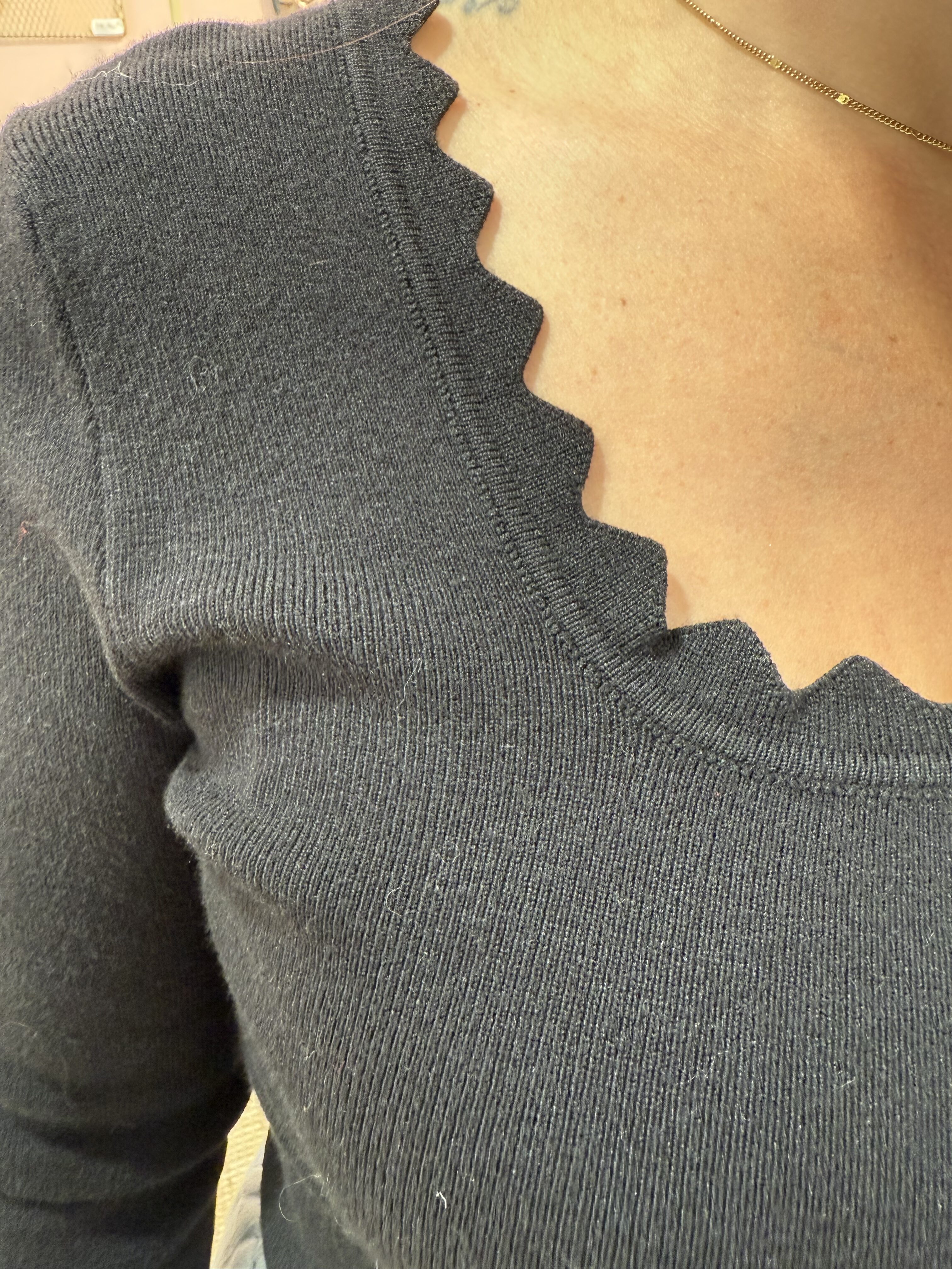 Le top Véa est une pièce intemporelle qui combine simplicité et raffinement. Avec sa coupe ajustée et son col festonné délicatement travaillé, il apporte une touche de féminité subtile et sophistiquée. Ses manches longues et son tissu doux en font un allié idéal pour toutes les saisons, que ce soit porté seul ou glissé sous une veste.